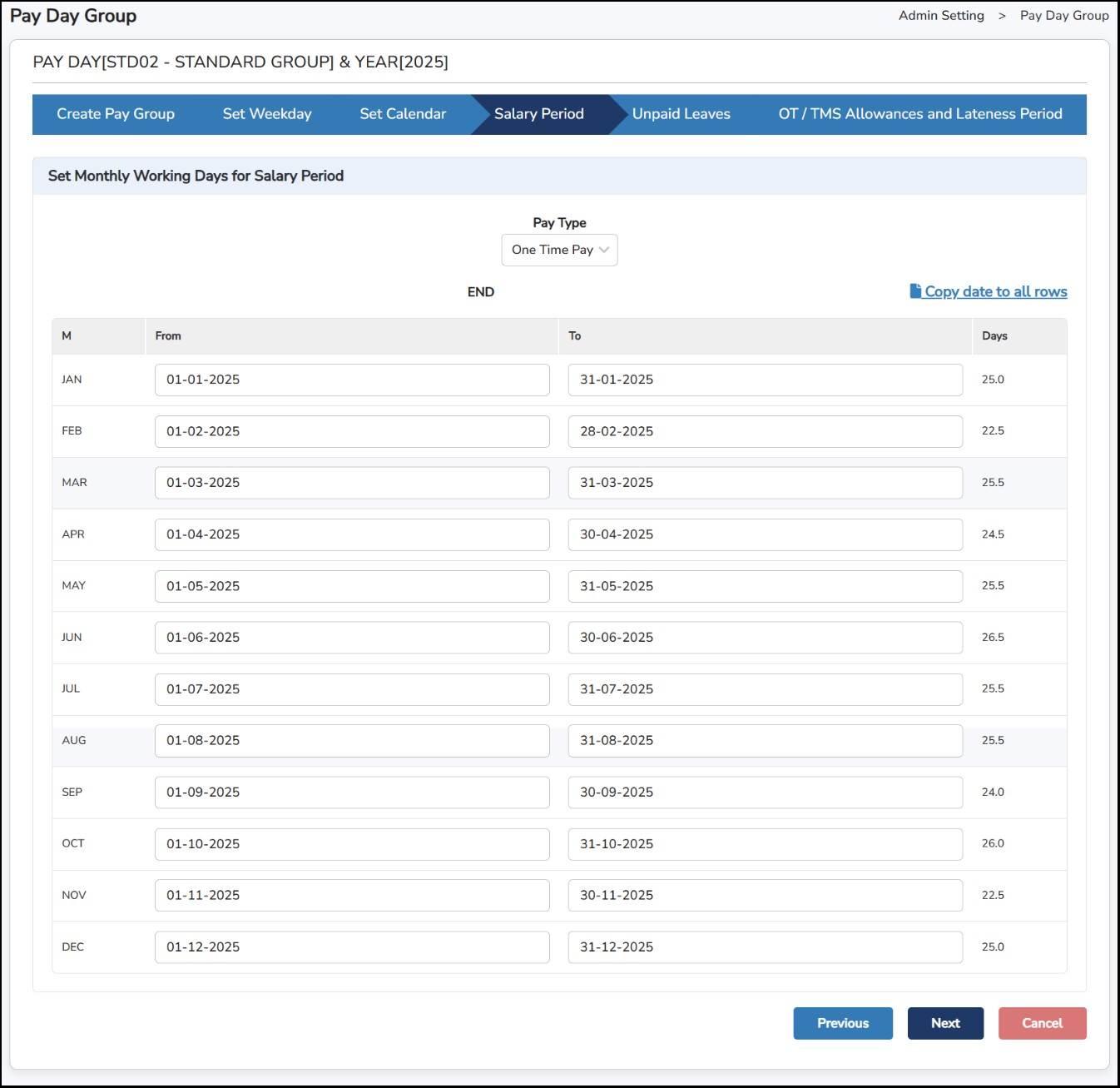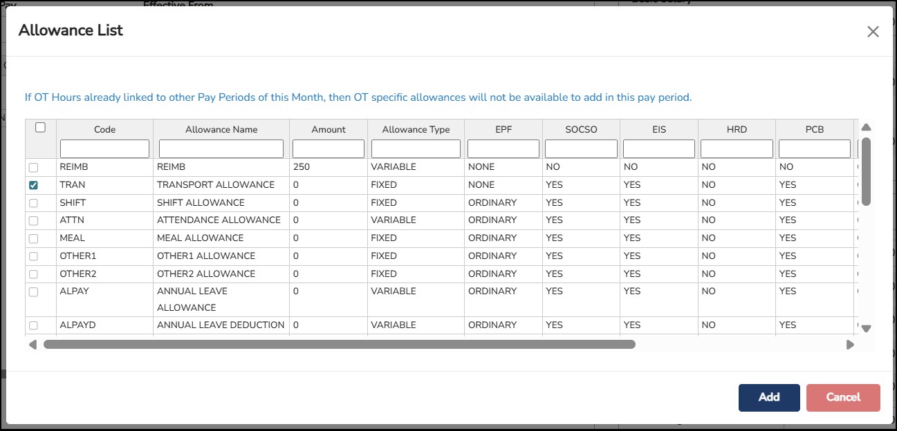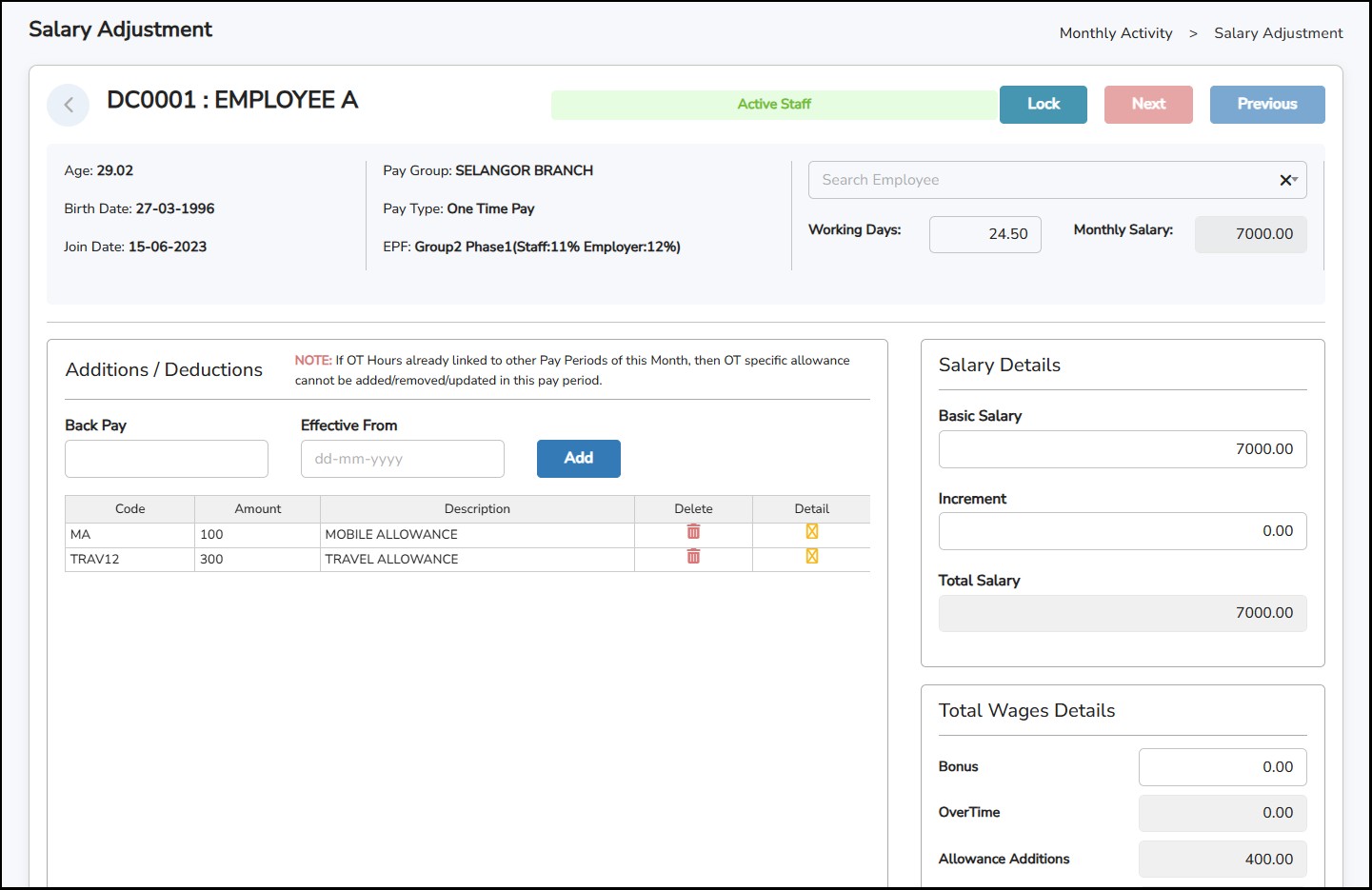 Allow to Lock Attendance Detail & Allow to Unlock Attendance Detail – To allow user to lock/unlock TMS attendance transaction.