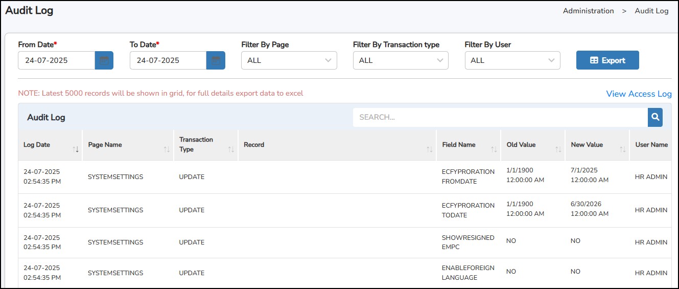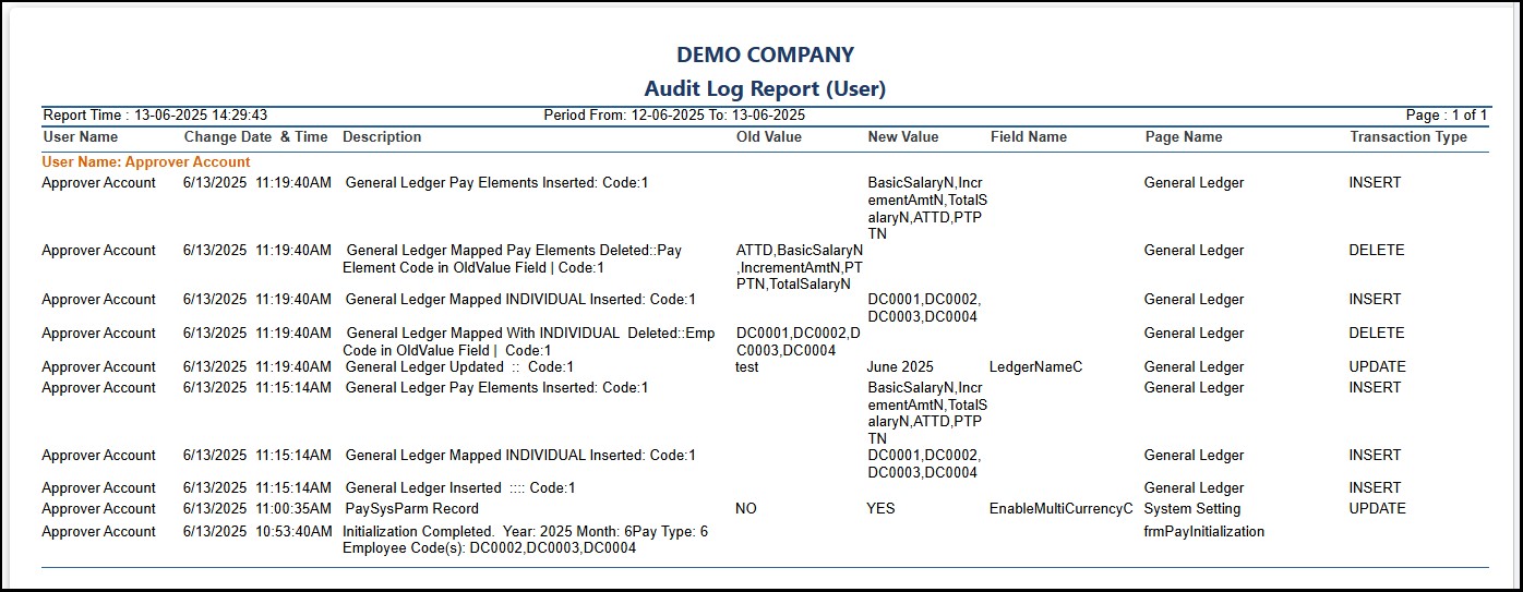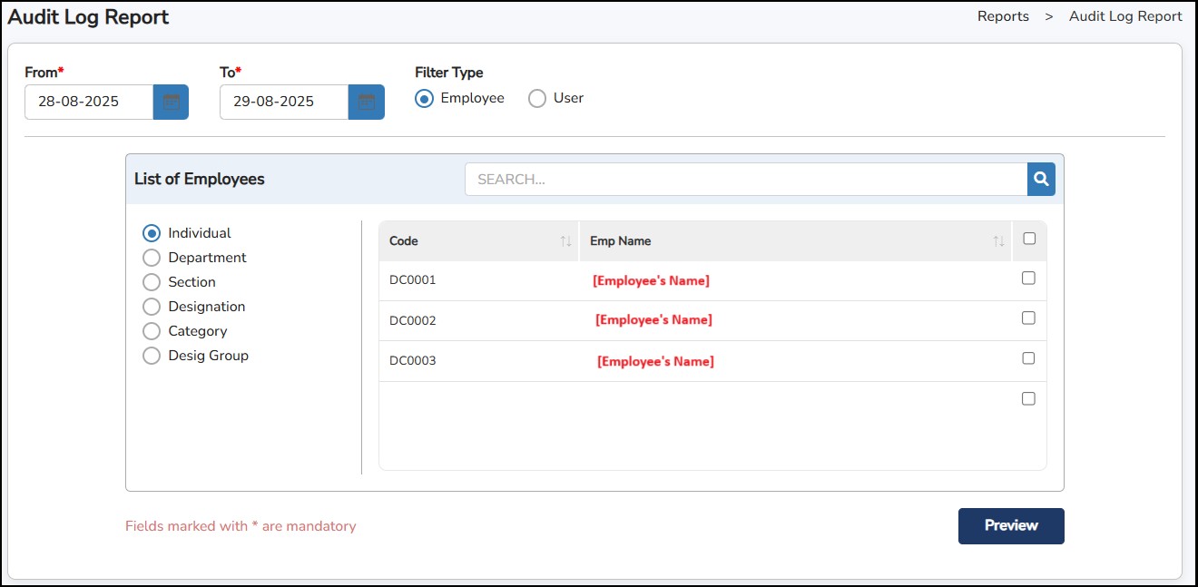 This feature will help you monitor the different activities done in the system by the user(s), approver(s) and employees.