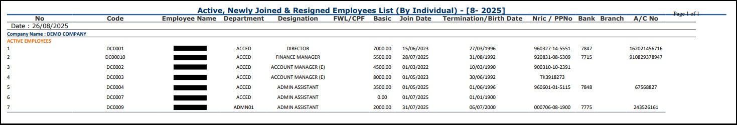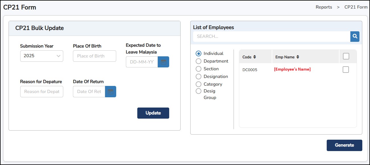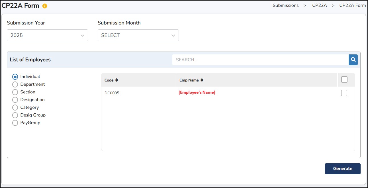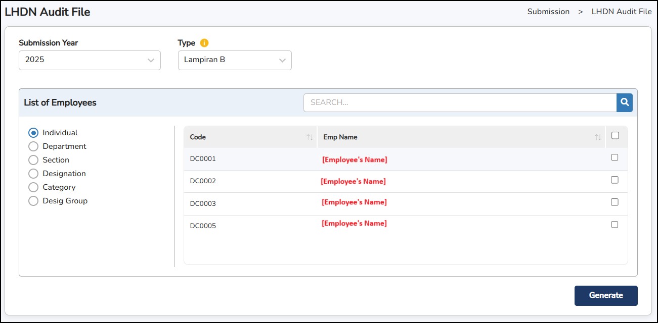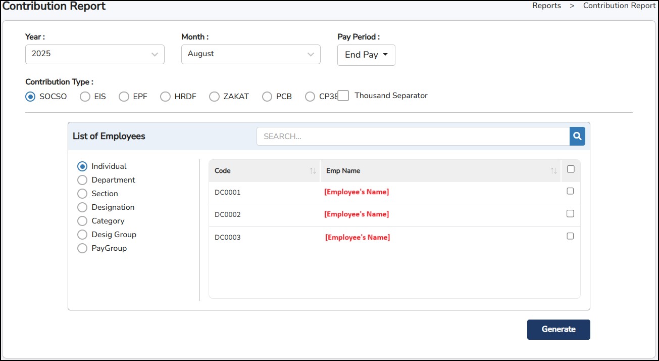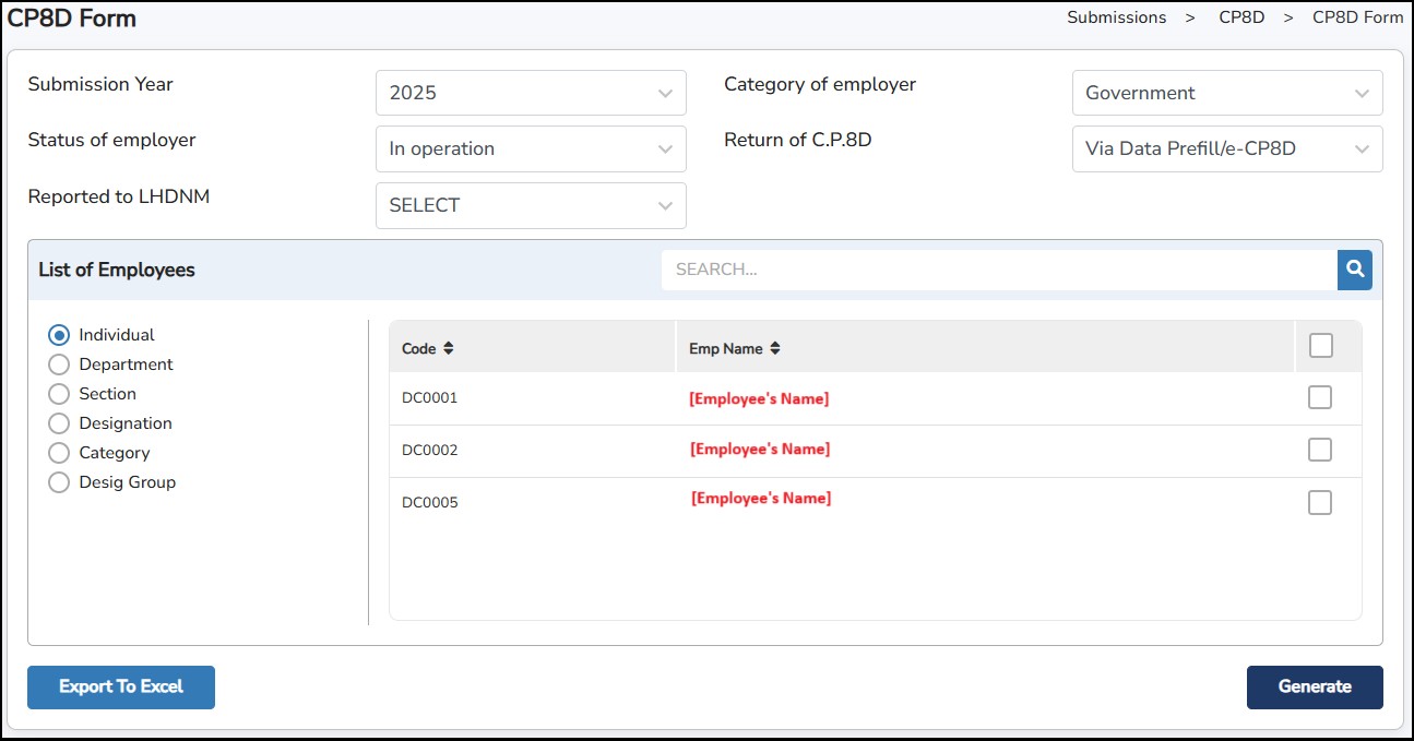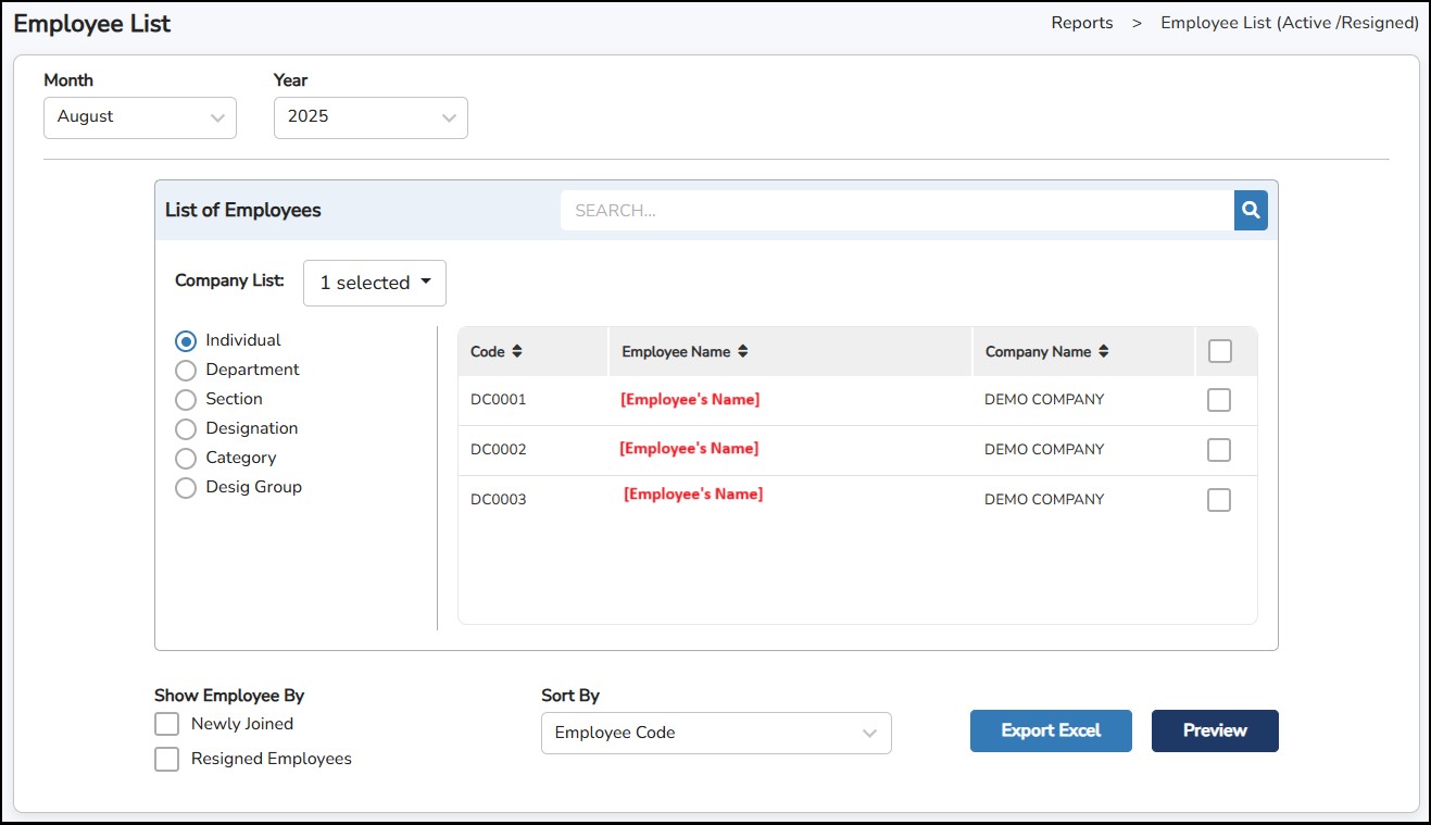 Step 3: Select the type of employees to generate: Active employee or Resigned employee only