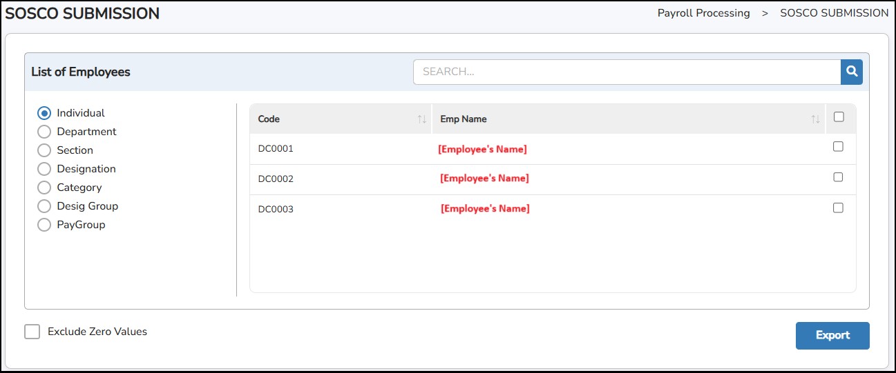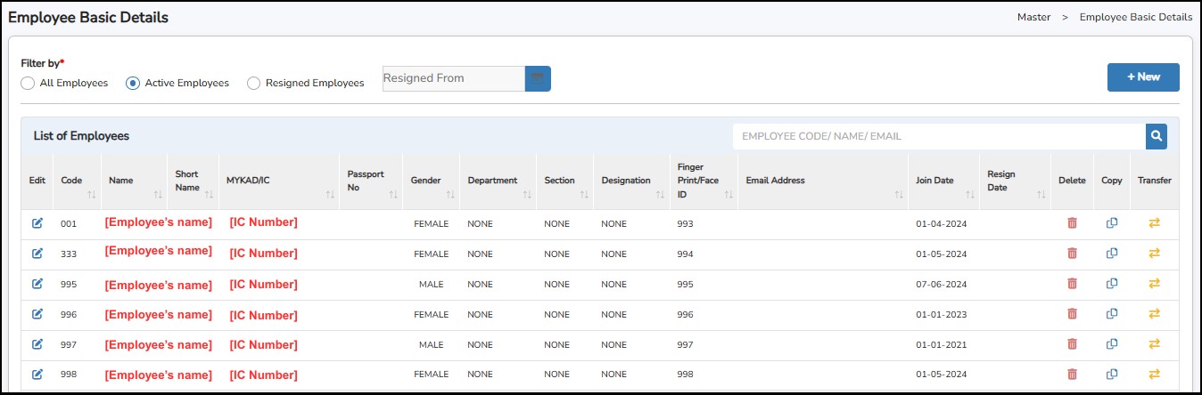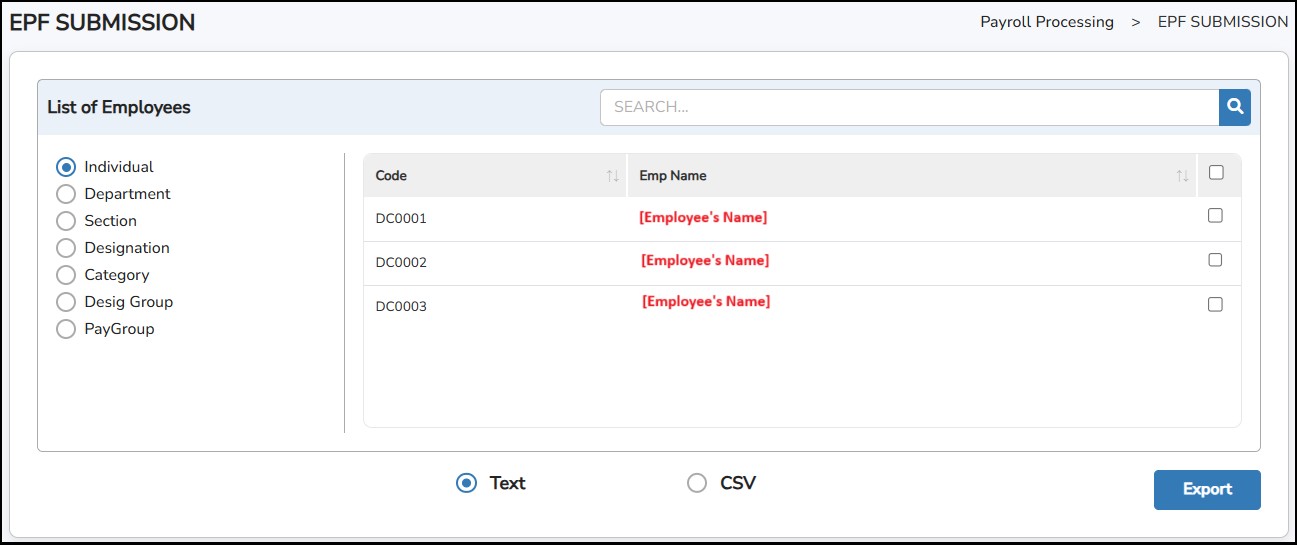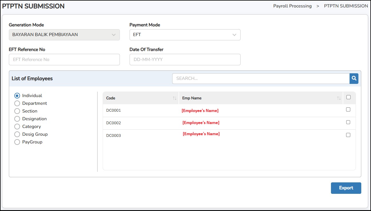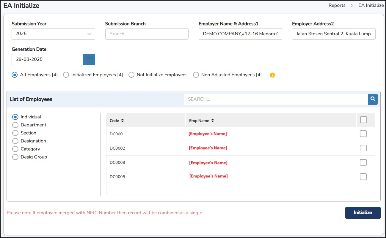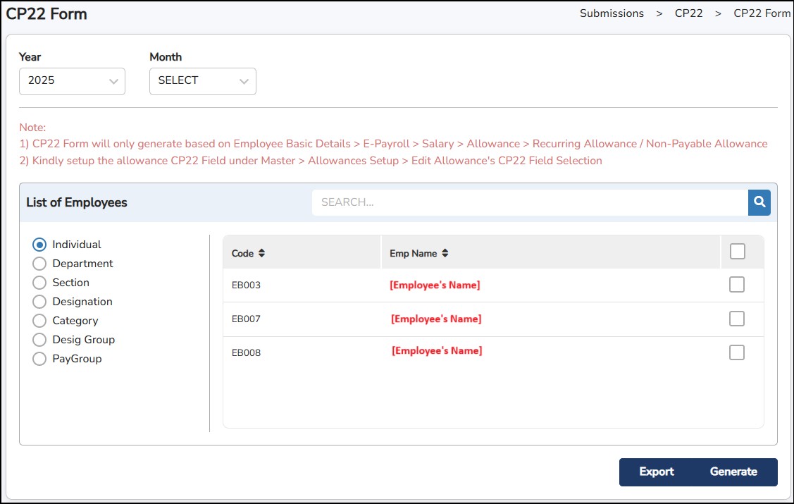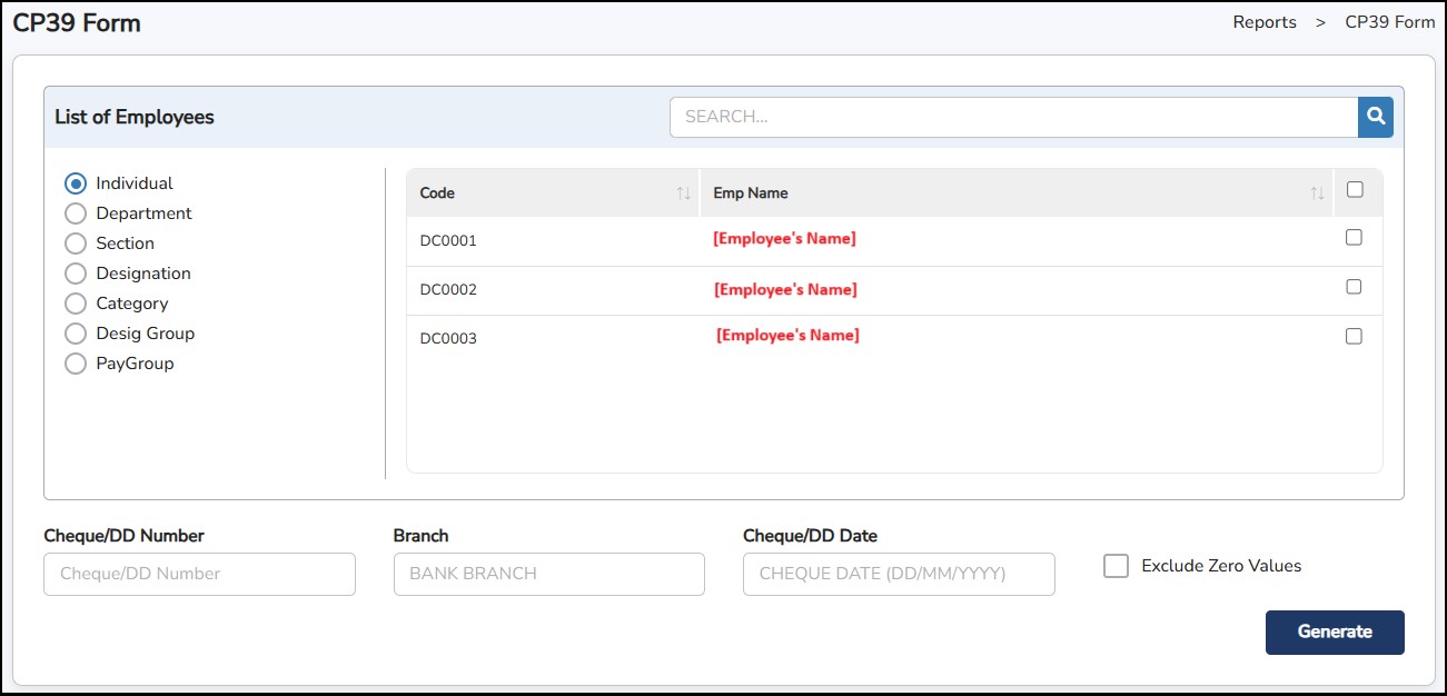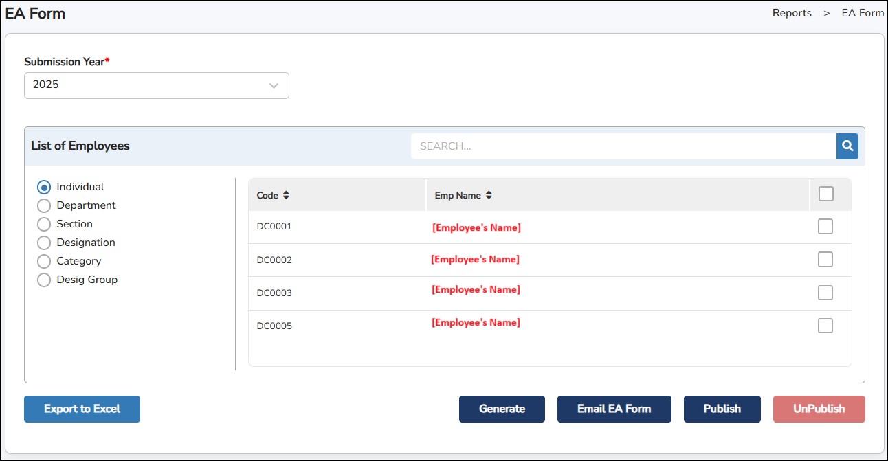 Step 3: Select the type of employees to generate: Active employee or Resigned employee only