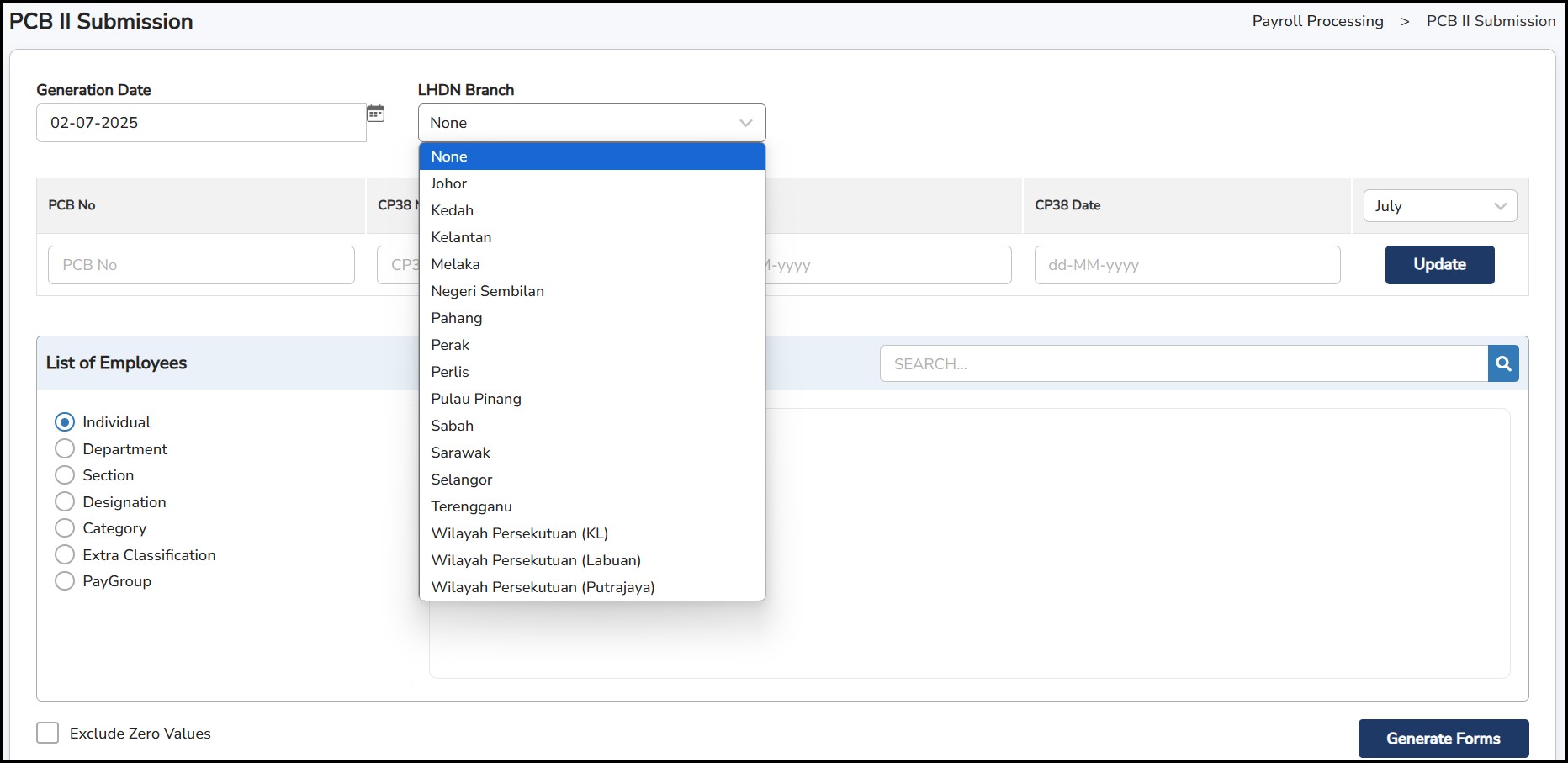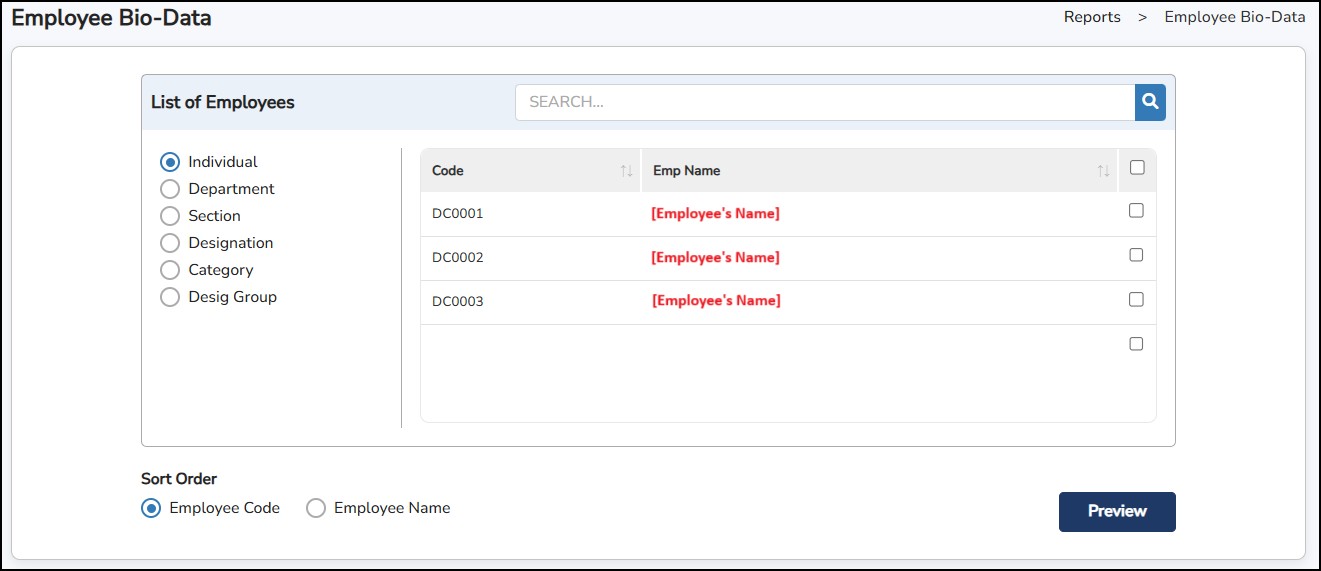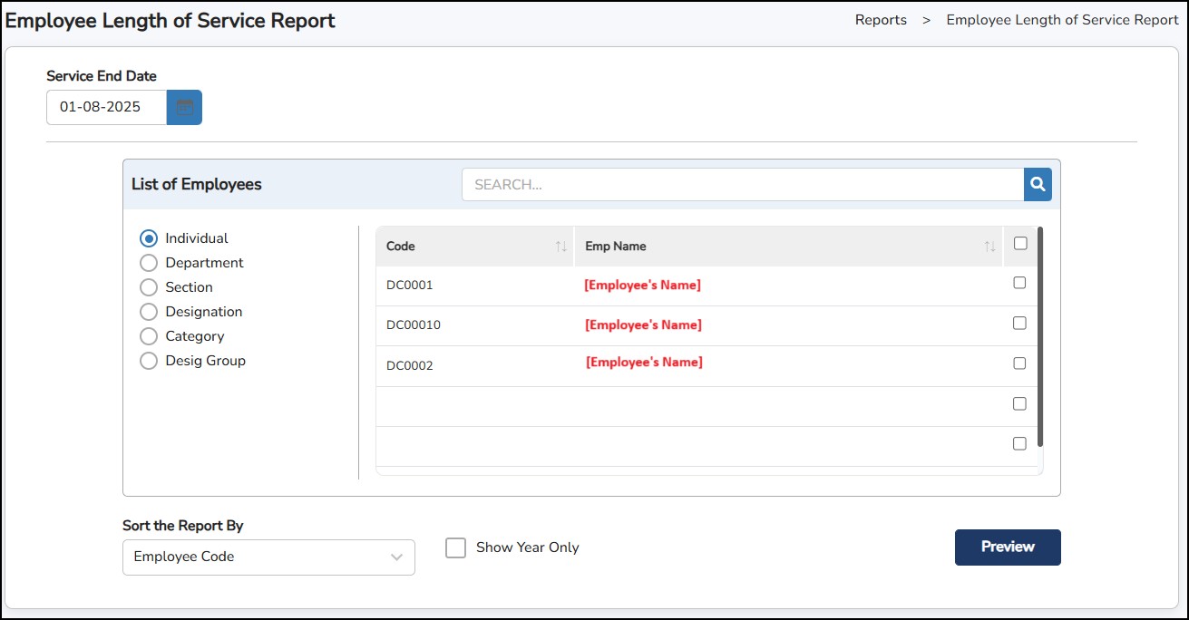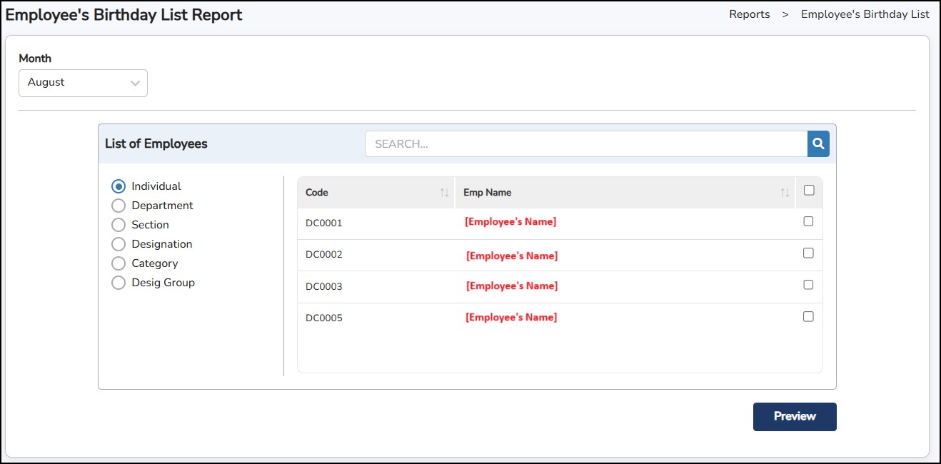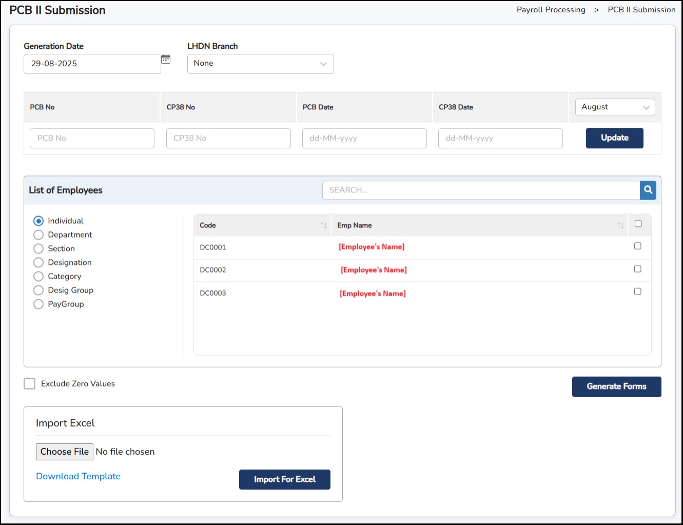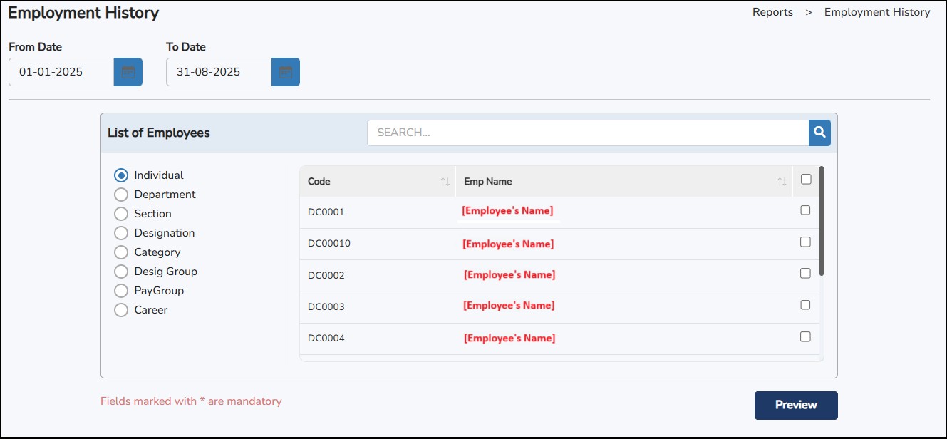 Step 3: Select the type of employees to generate: Active employee or Resigned employee only