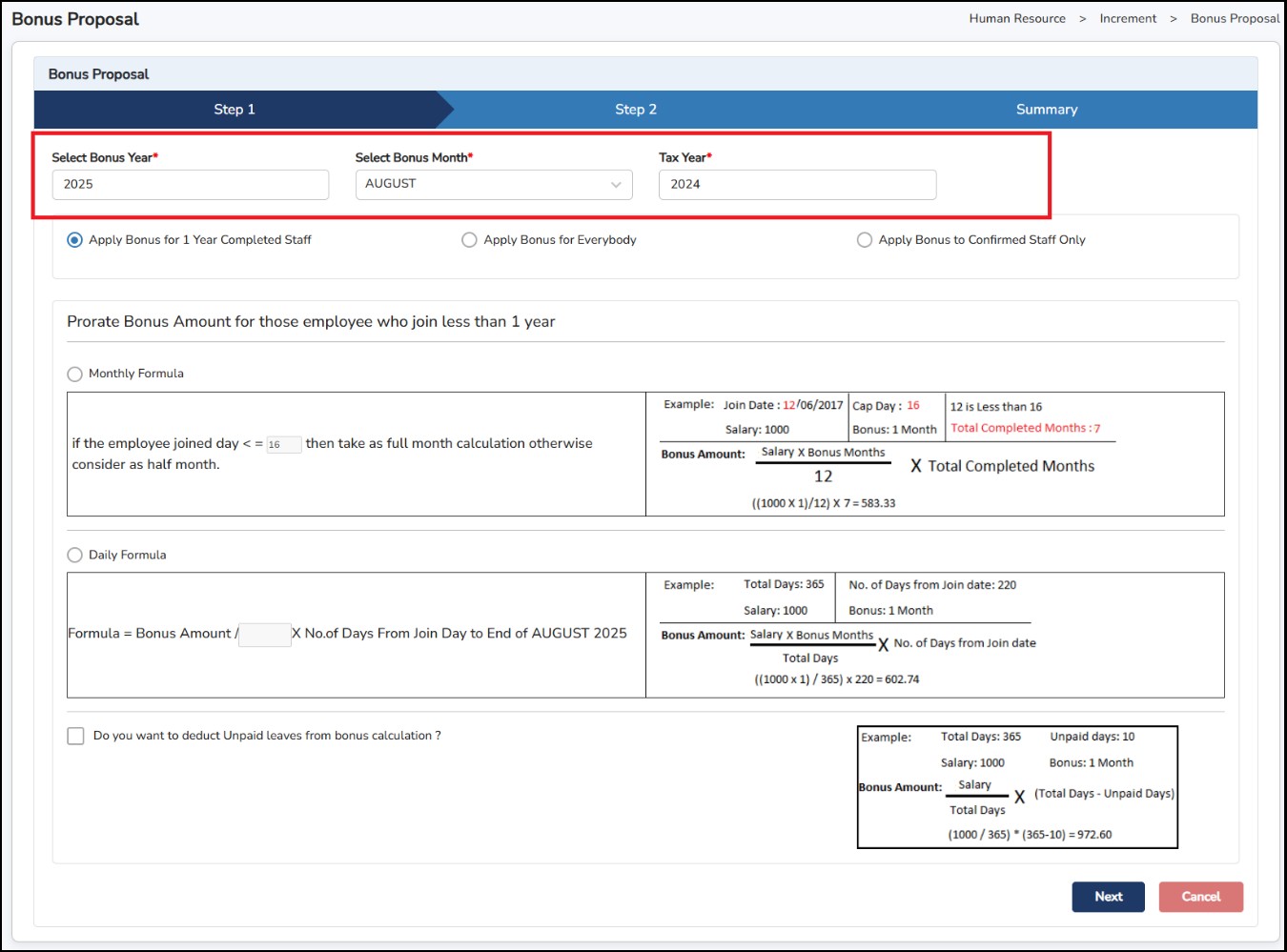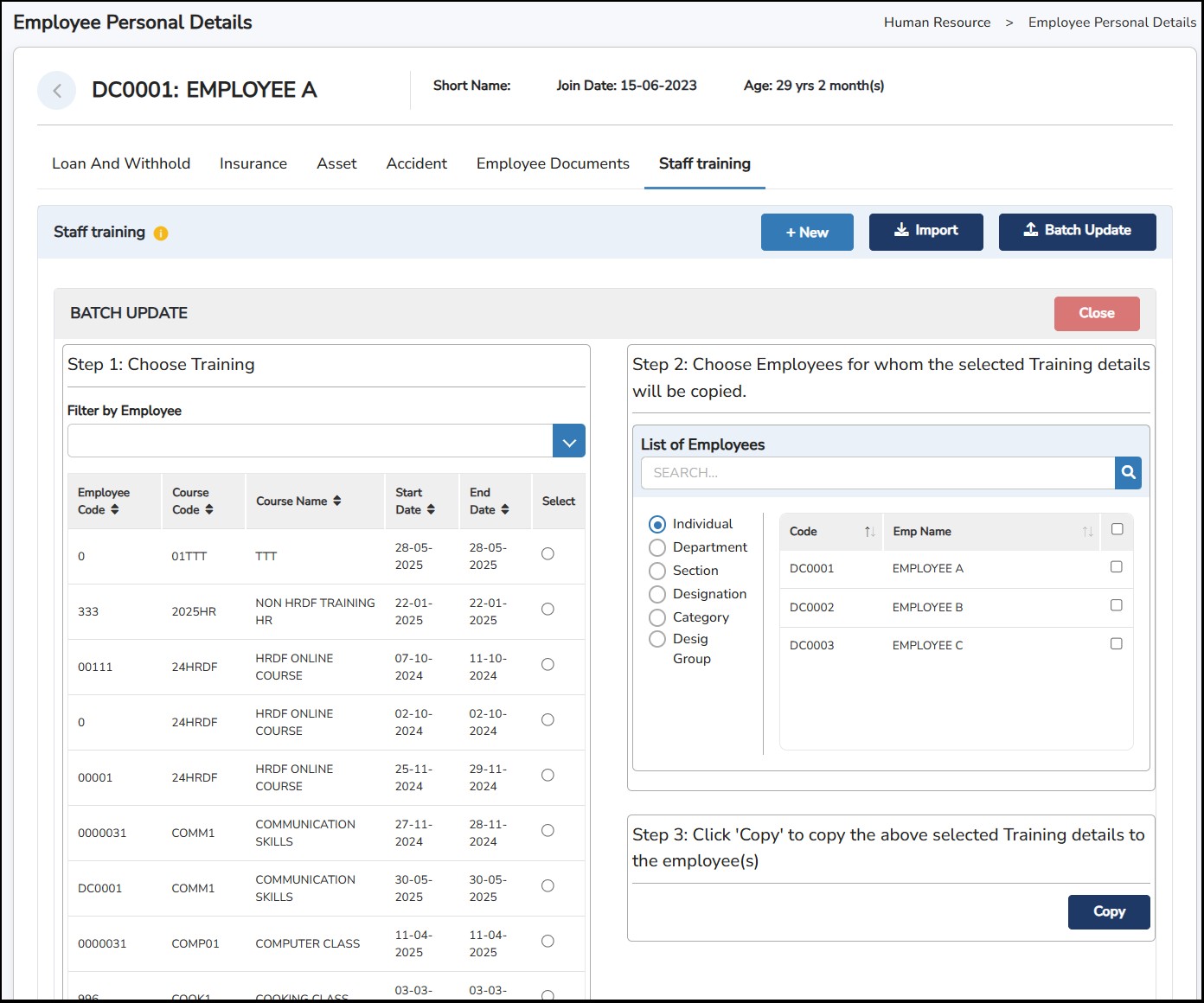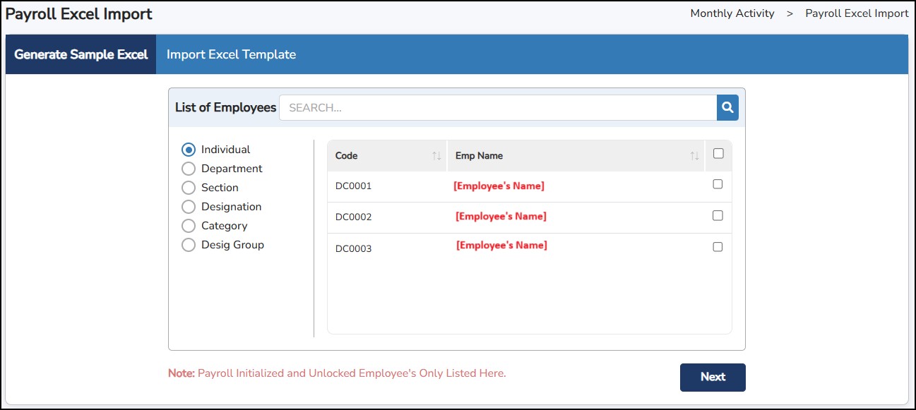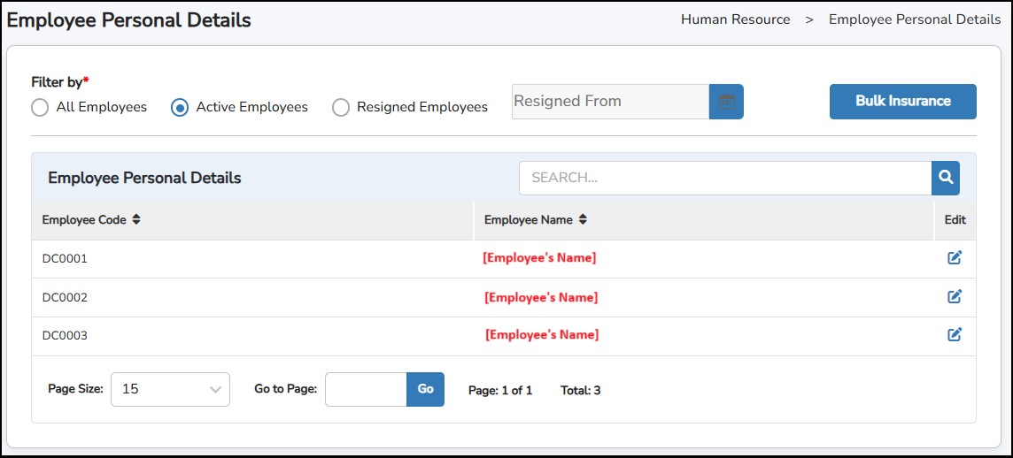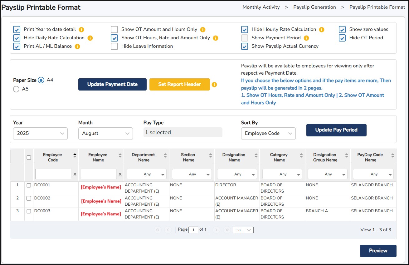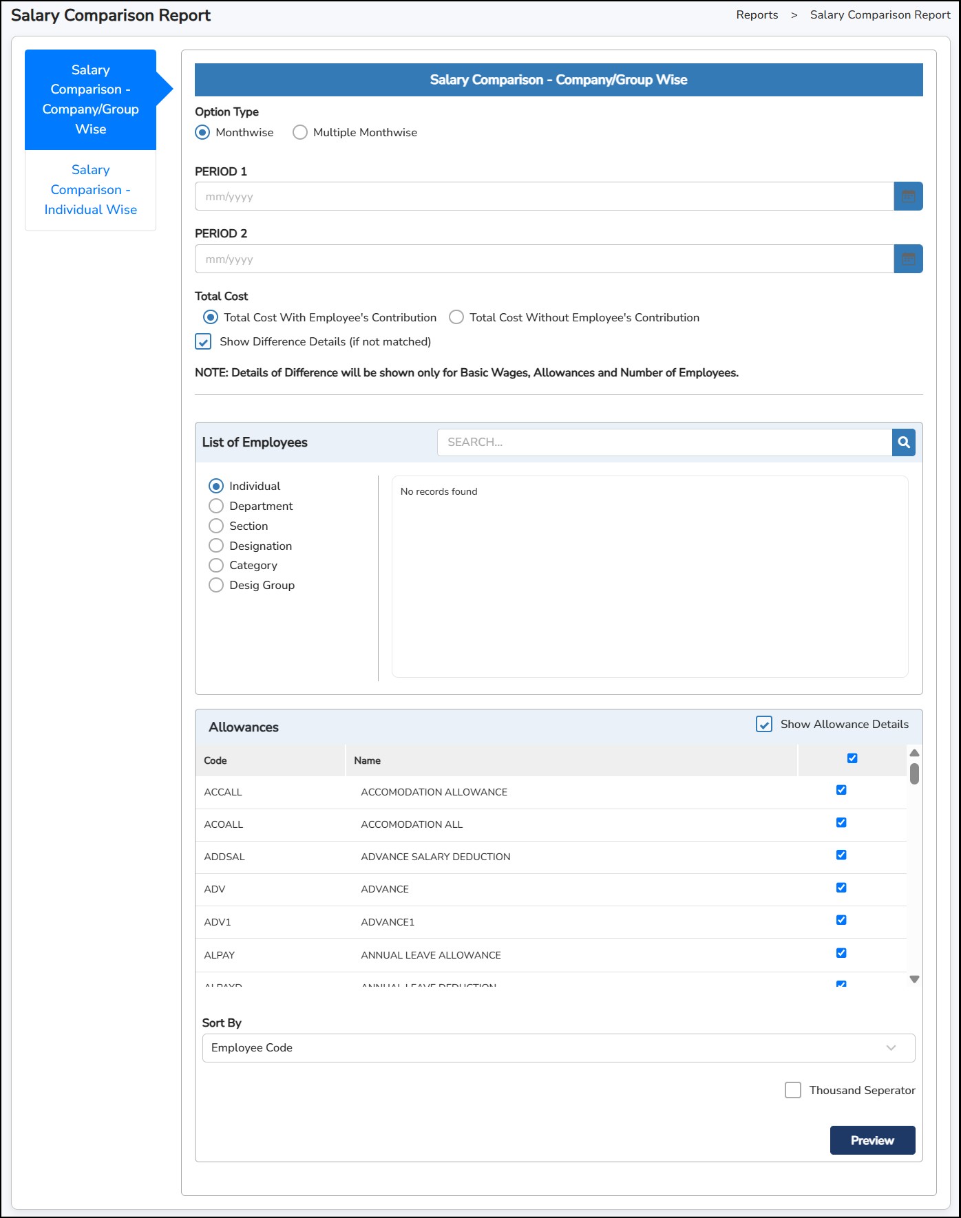 Step 3: Select the type of employees to generate: Active employee or Resigned employee only
