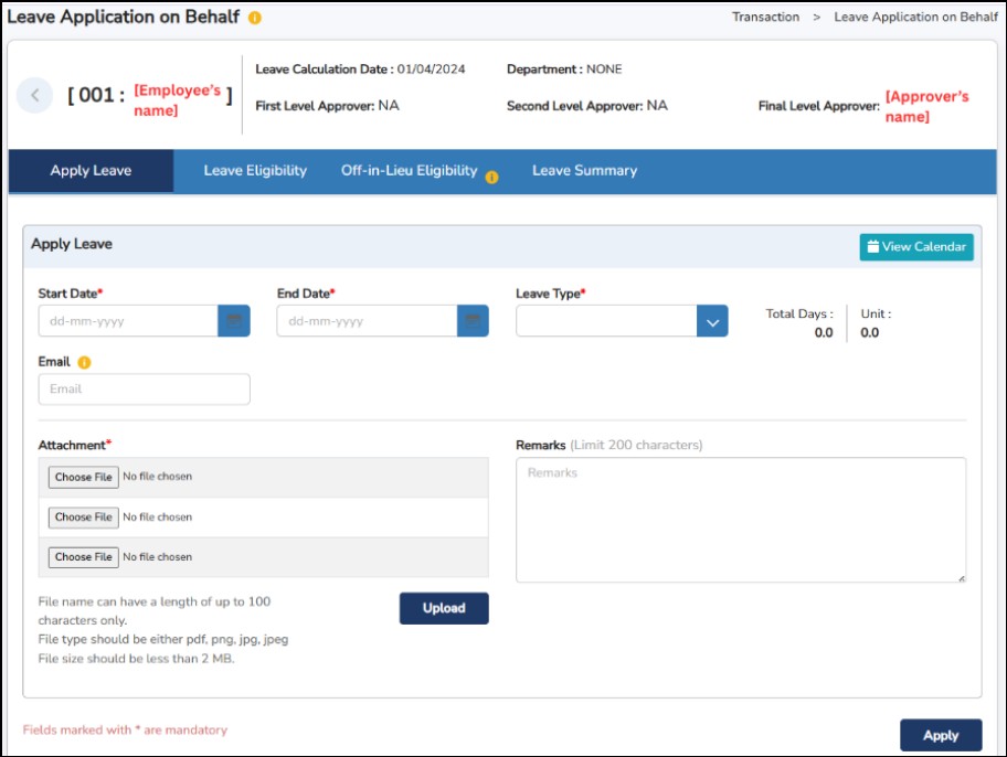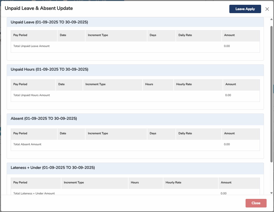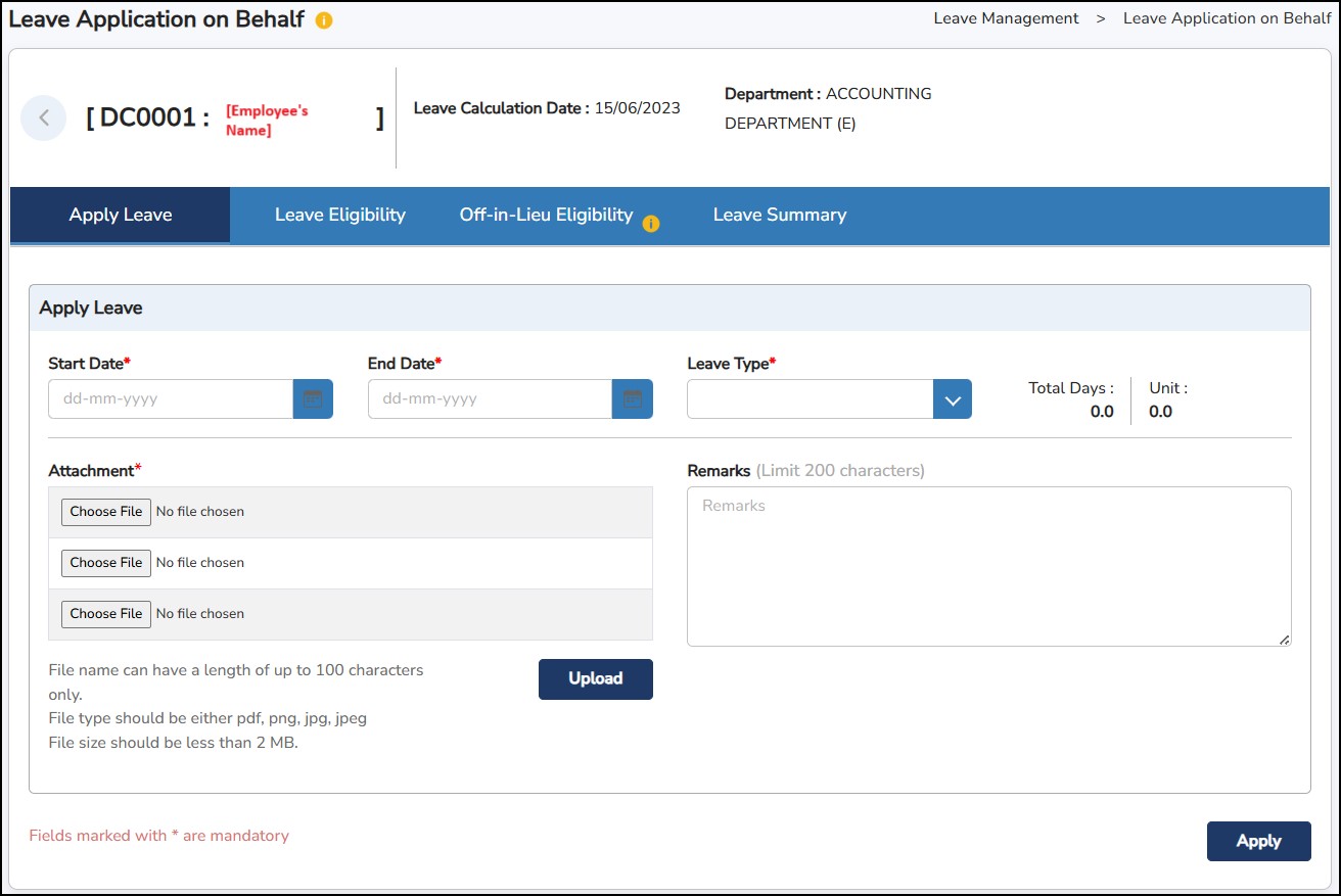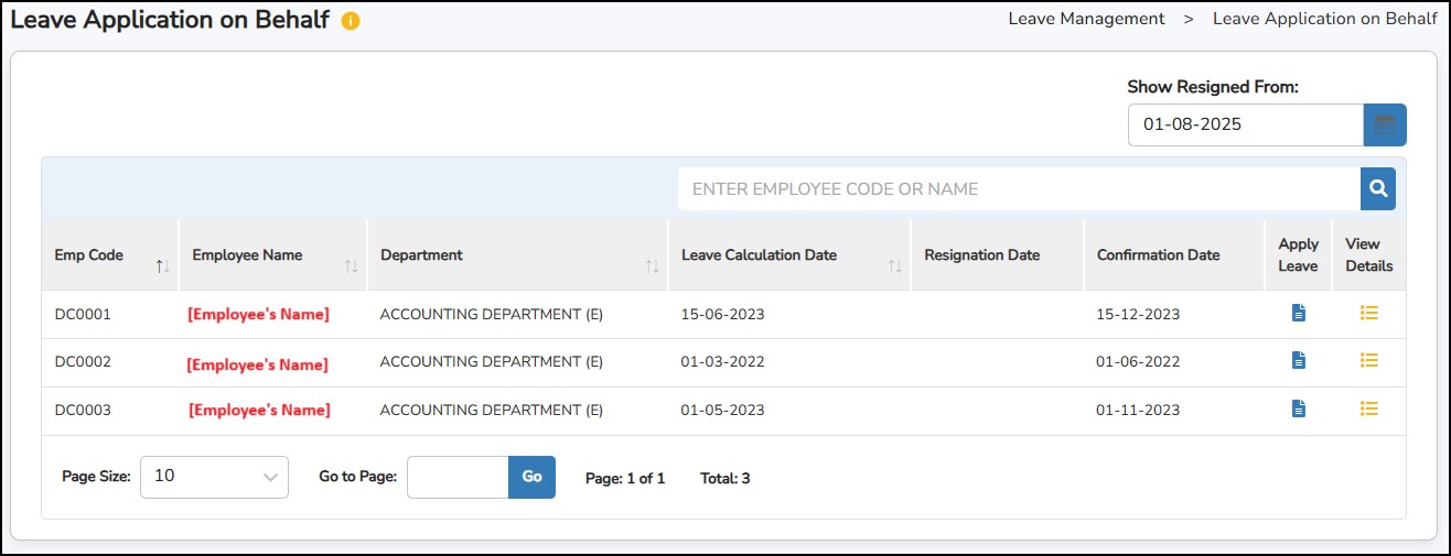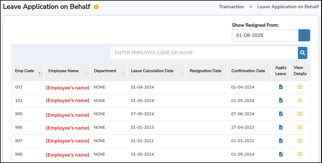 This is to view applied leave by the employees. Users may filter the application by Department and Section to be displayed.