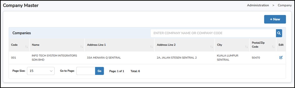 Step 2: Enter Company Code (Alphanumeric Max. 6 characters) > Full Company Name > Location > Street > City > Postal Code