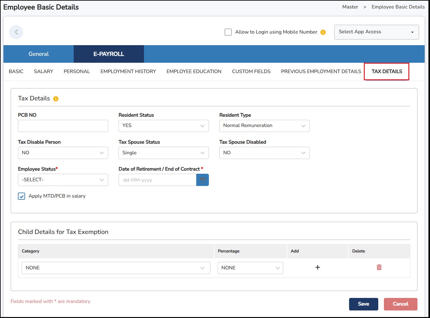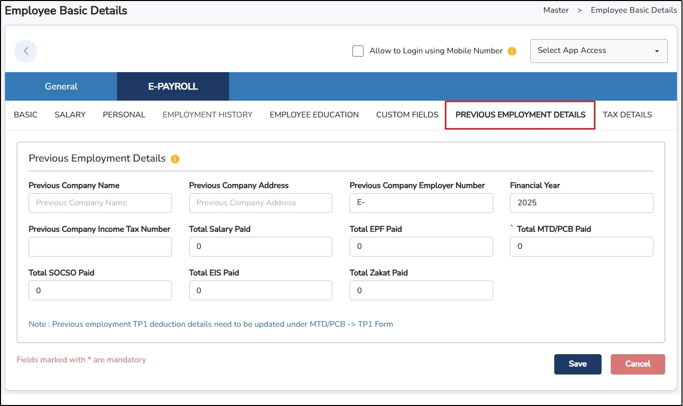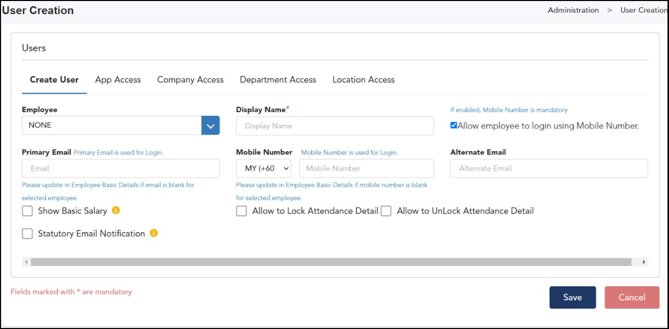 **Note: To enable employees to log in using their mobile number, tick Enable/Disable Mobile Number Login.