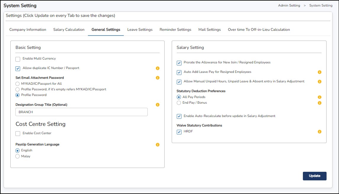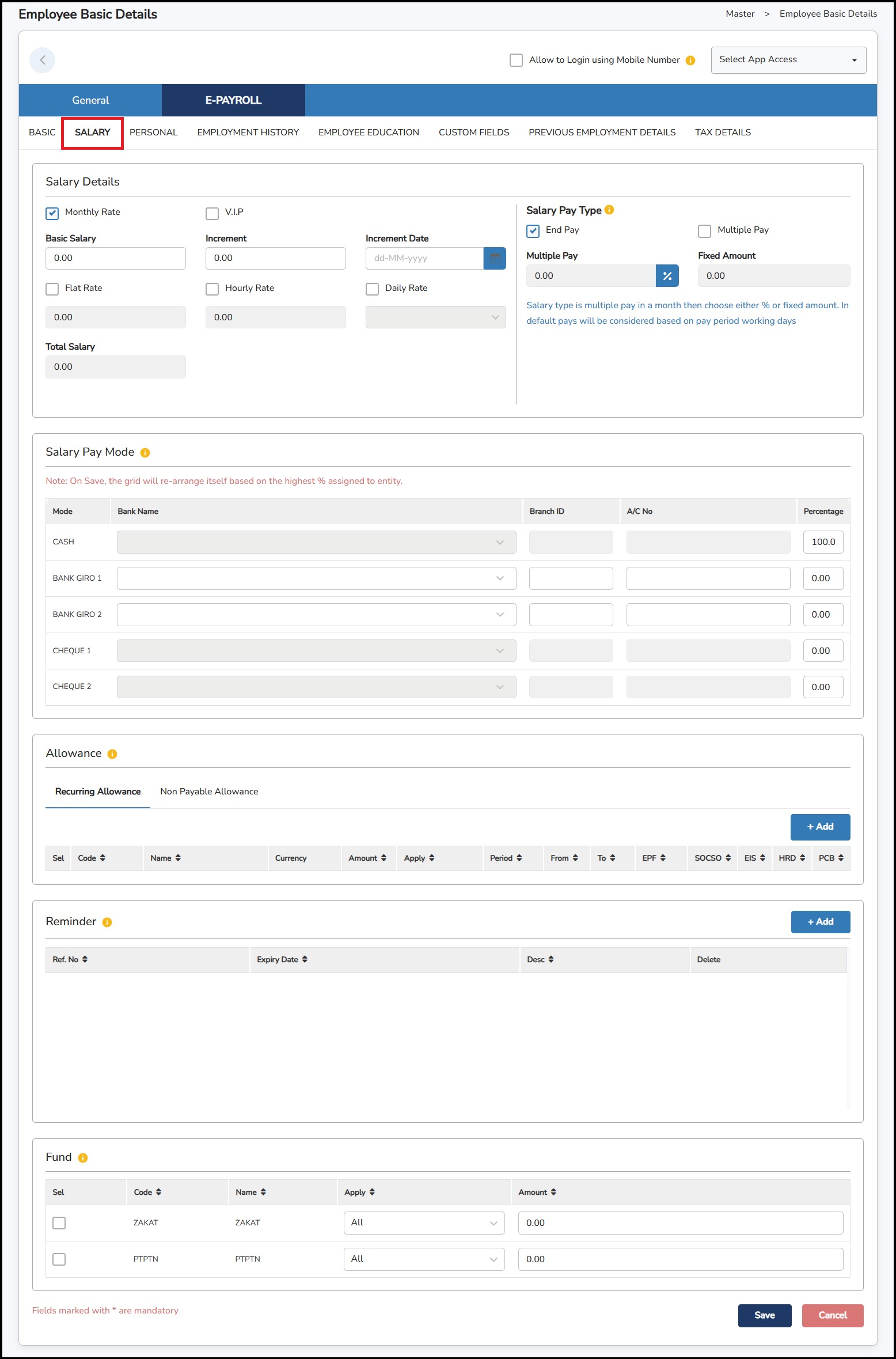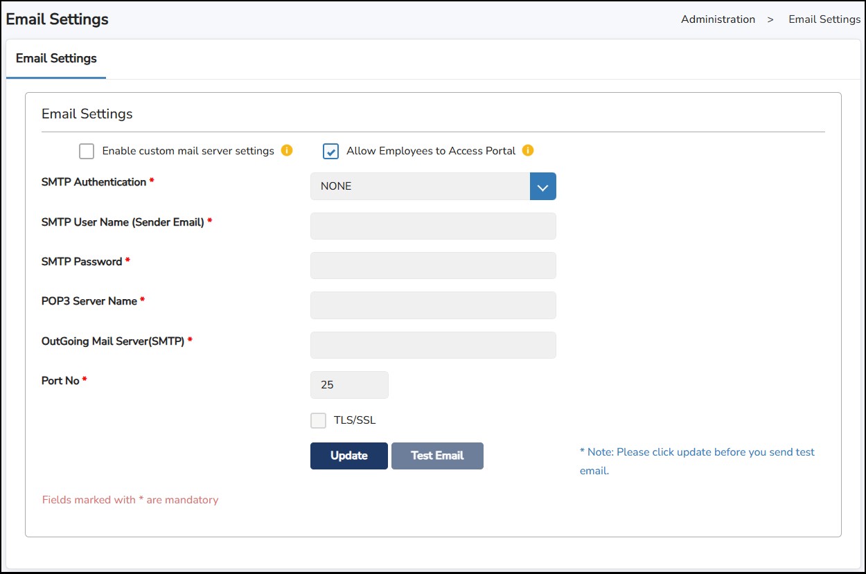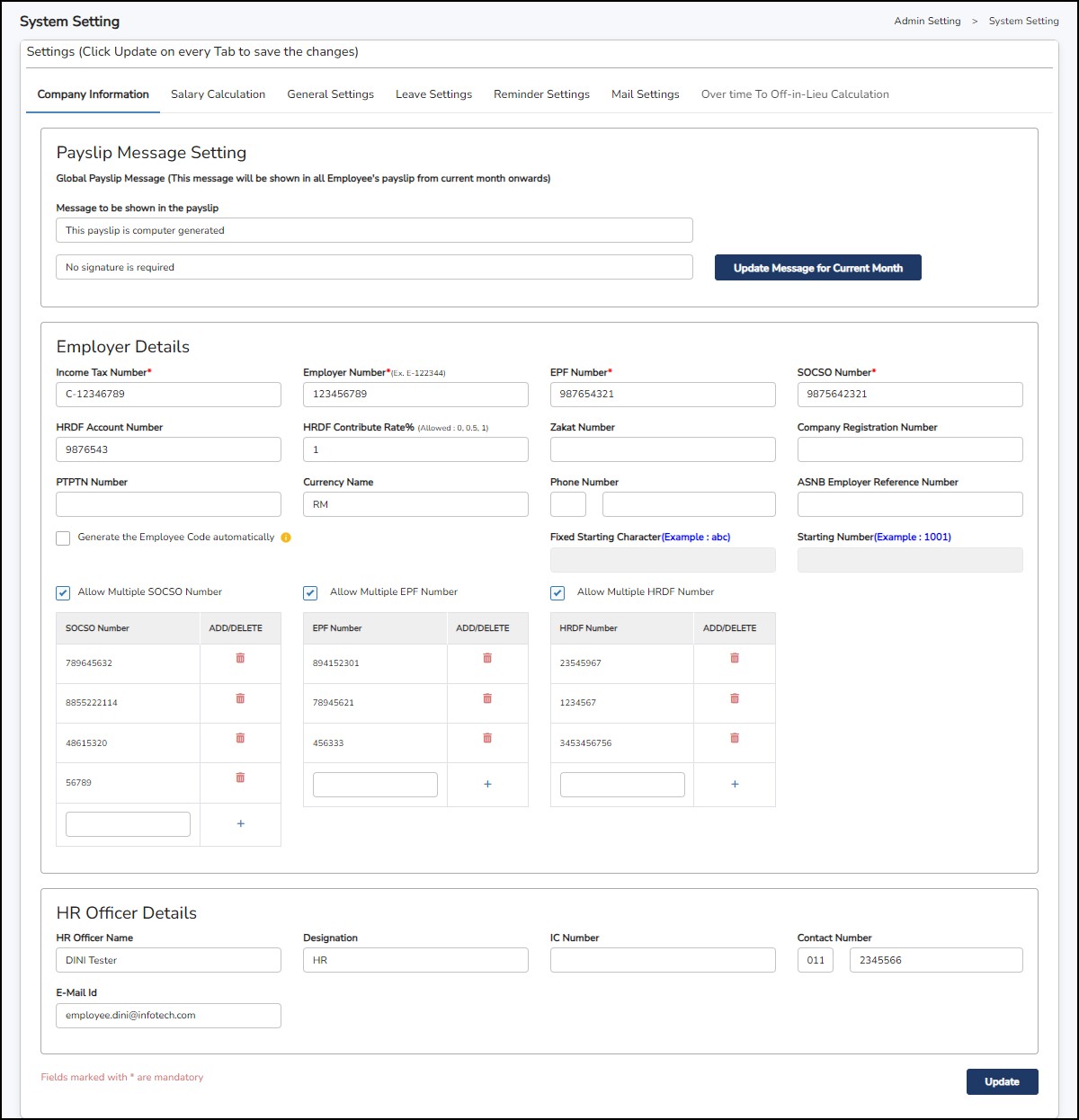 **Note: To enable employees to log in using their mobile number, tick Enable/Disable Mobile Number Login.