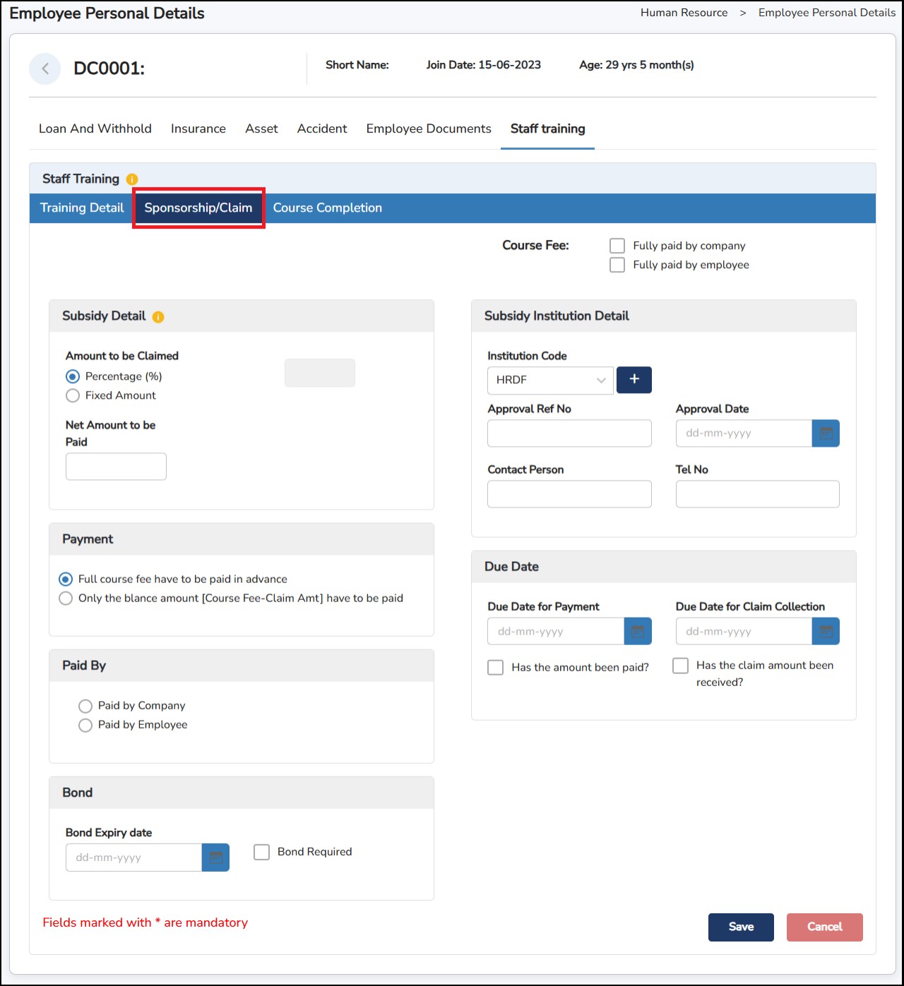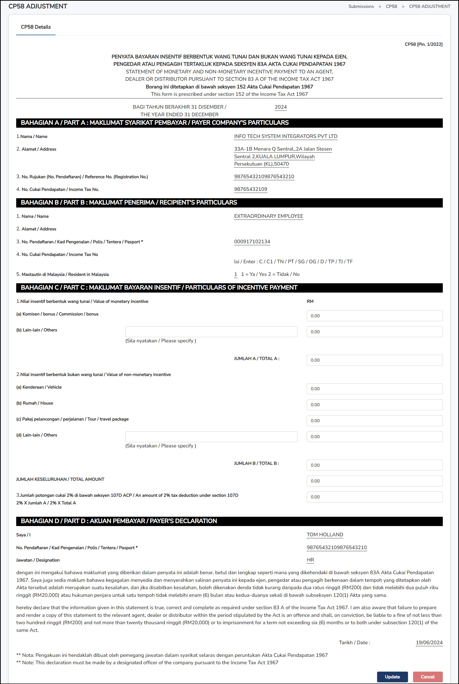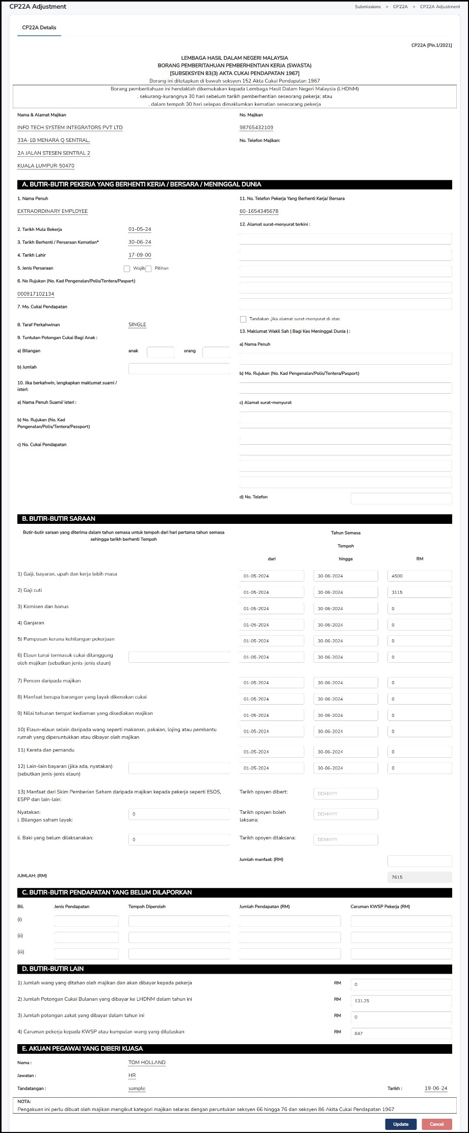 Use this function to request updates for any Tax Relief in the system. Once submitted, your HR/Admin will review and either approve or reject the request.