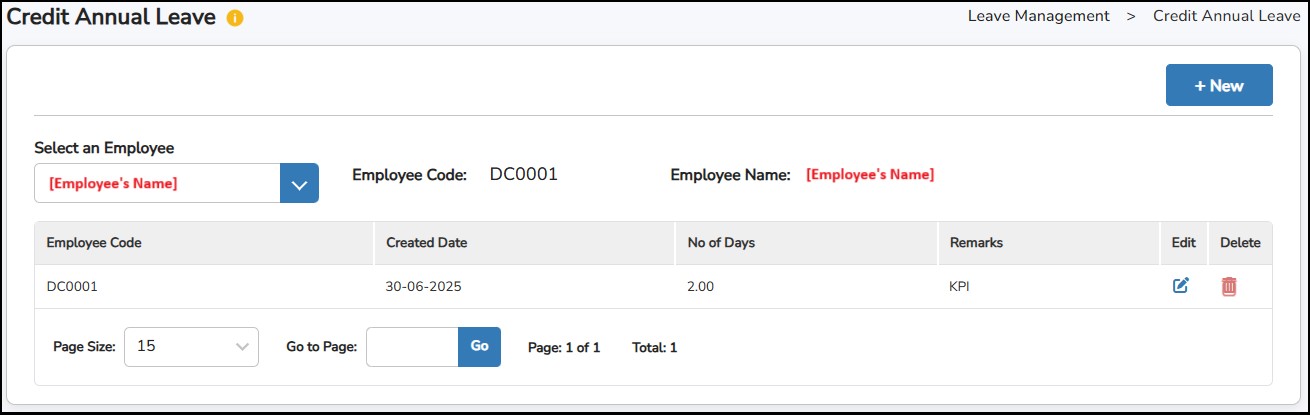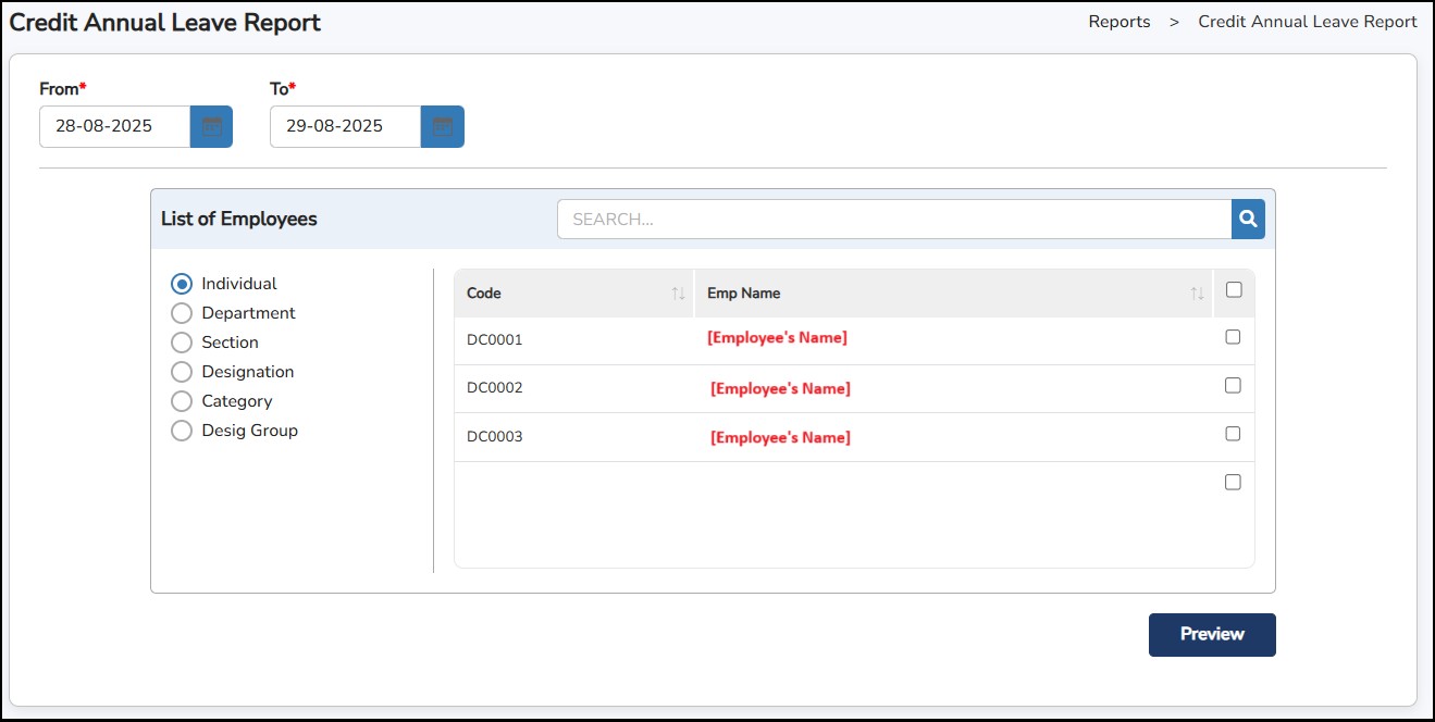 Step 1: Go to Report > Leave Reports > Credit Annual Leave Report.