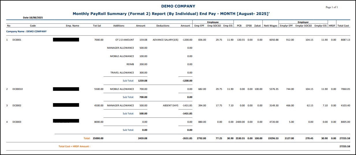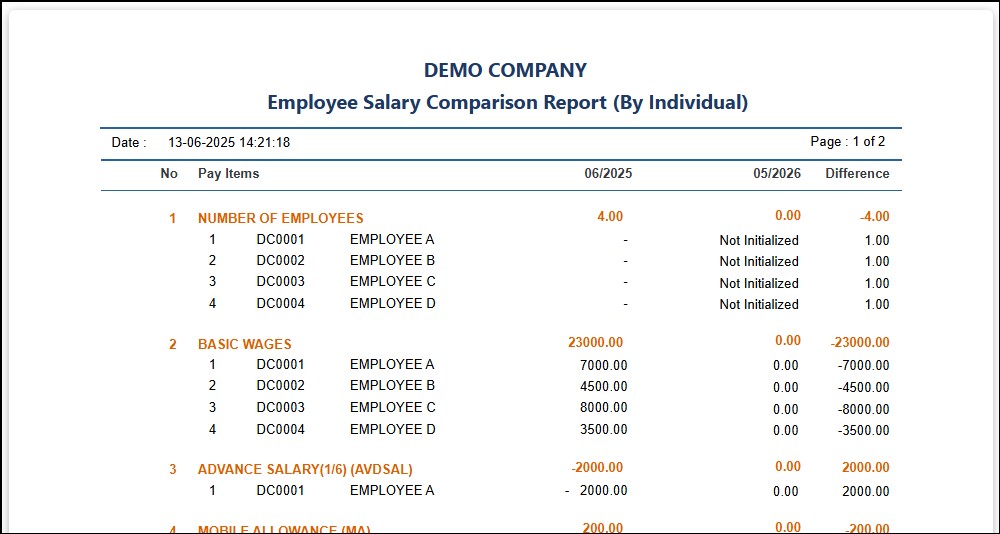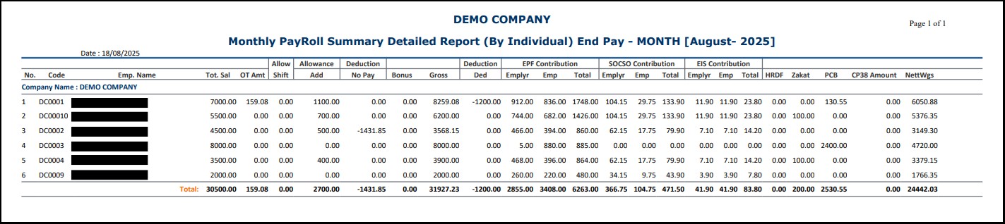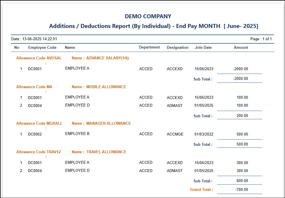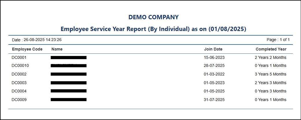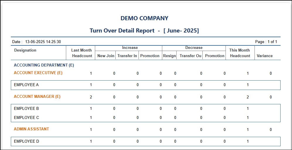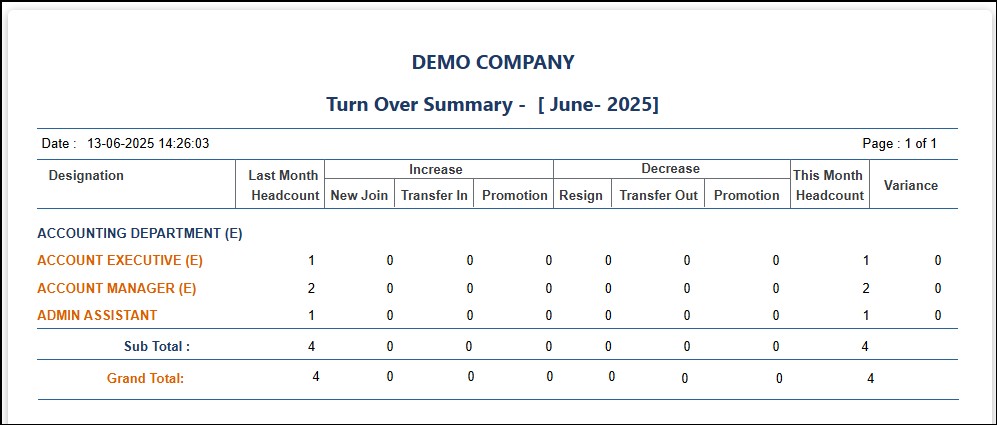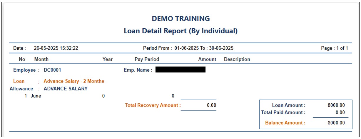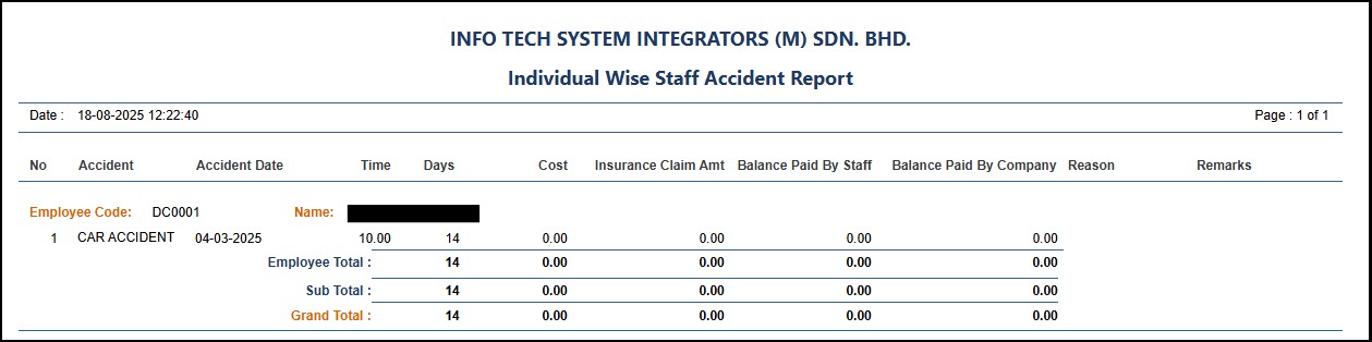This report provides a detailed summary of each employee's annual and medical leave records for the current year. It allows HR and managers to monitor leave entitlements, usage, and remaining balances in real time.