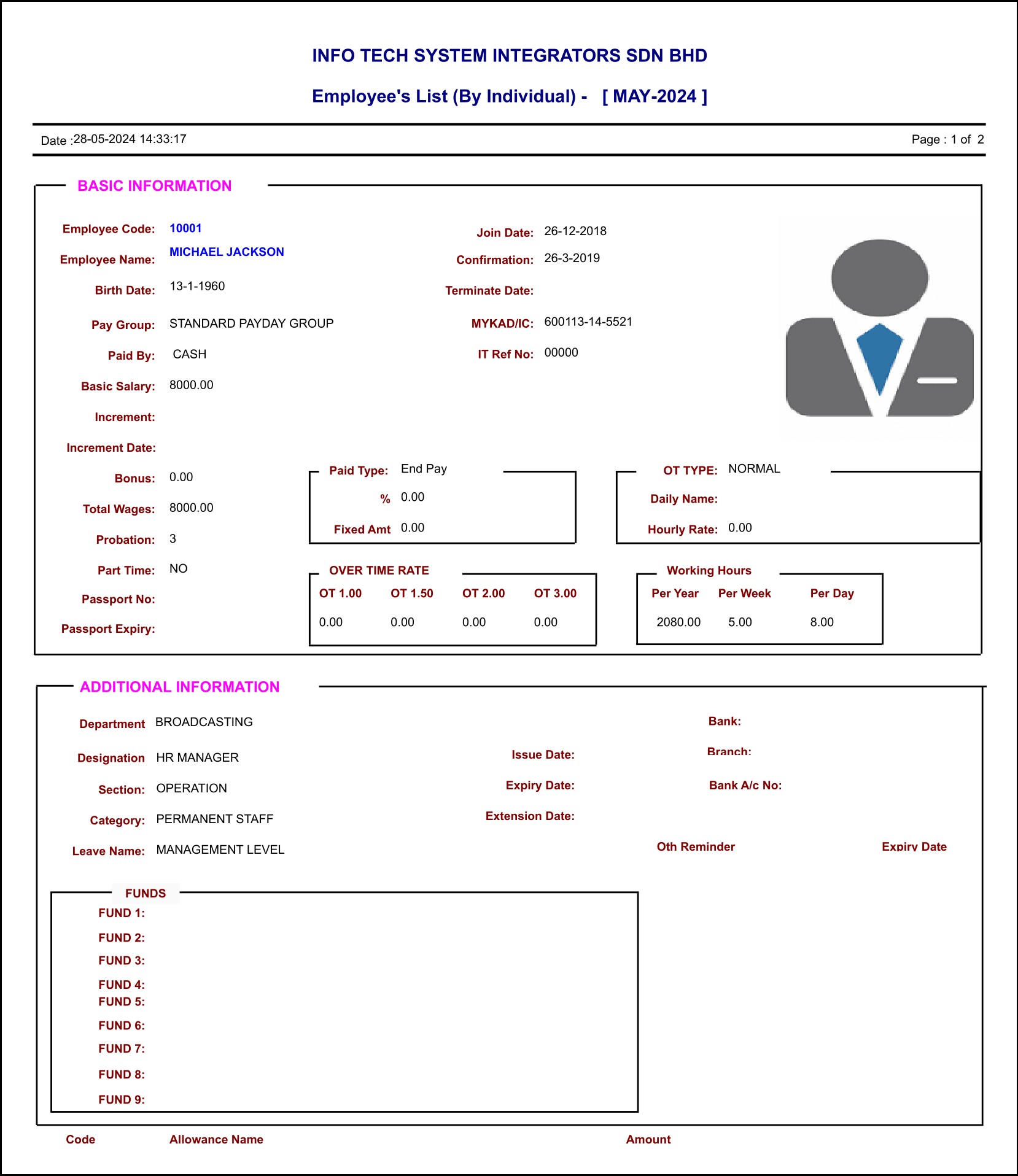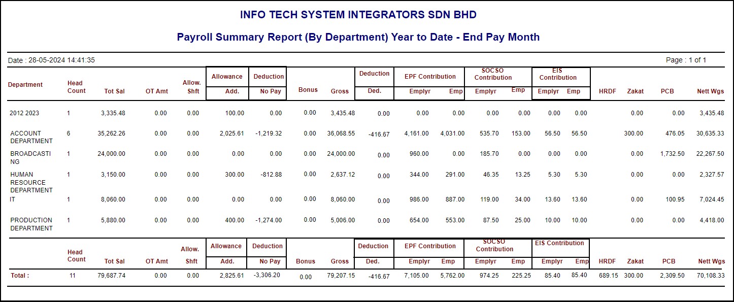 Info-Tech Systems Integrators Sdn. Bhd., the leading HR software vendor in Malaysia, introduces the Payroll Management System Cloud Portal. This cloud portal is designed to help you process the employee's salary for each month, print out their payslips, do the EPF, Bank and Income Tax submissions. The system includes leave functions that will help monitor employee's leave for the month and print out in the payslip.