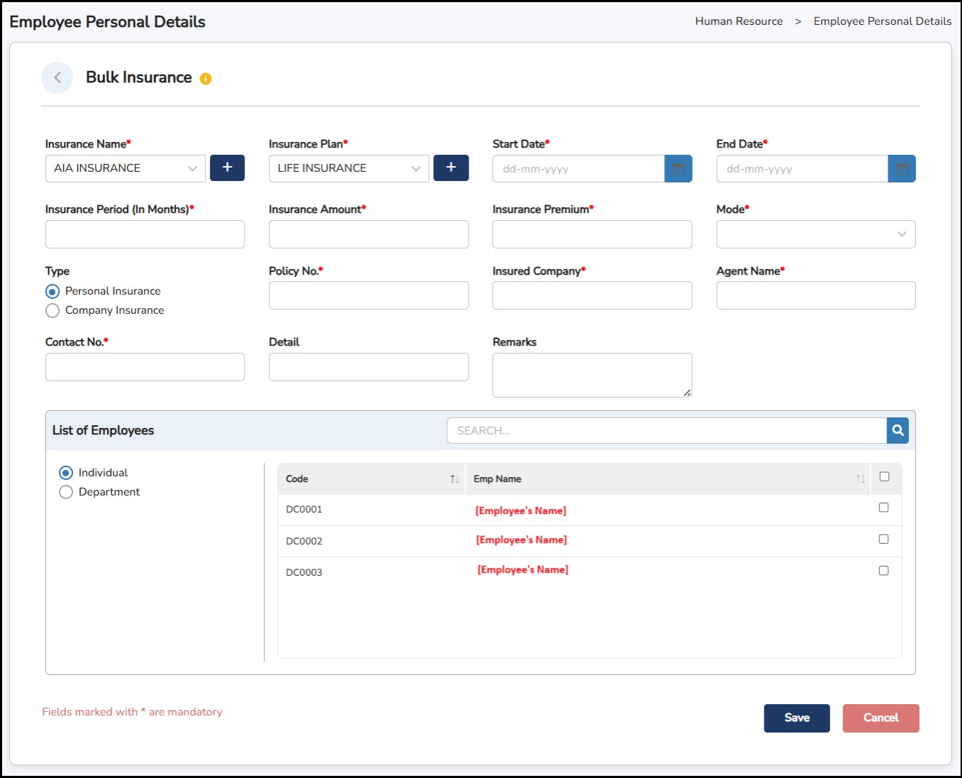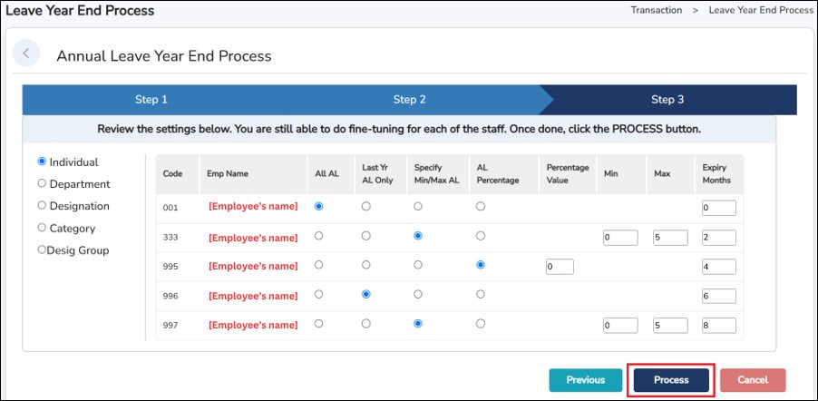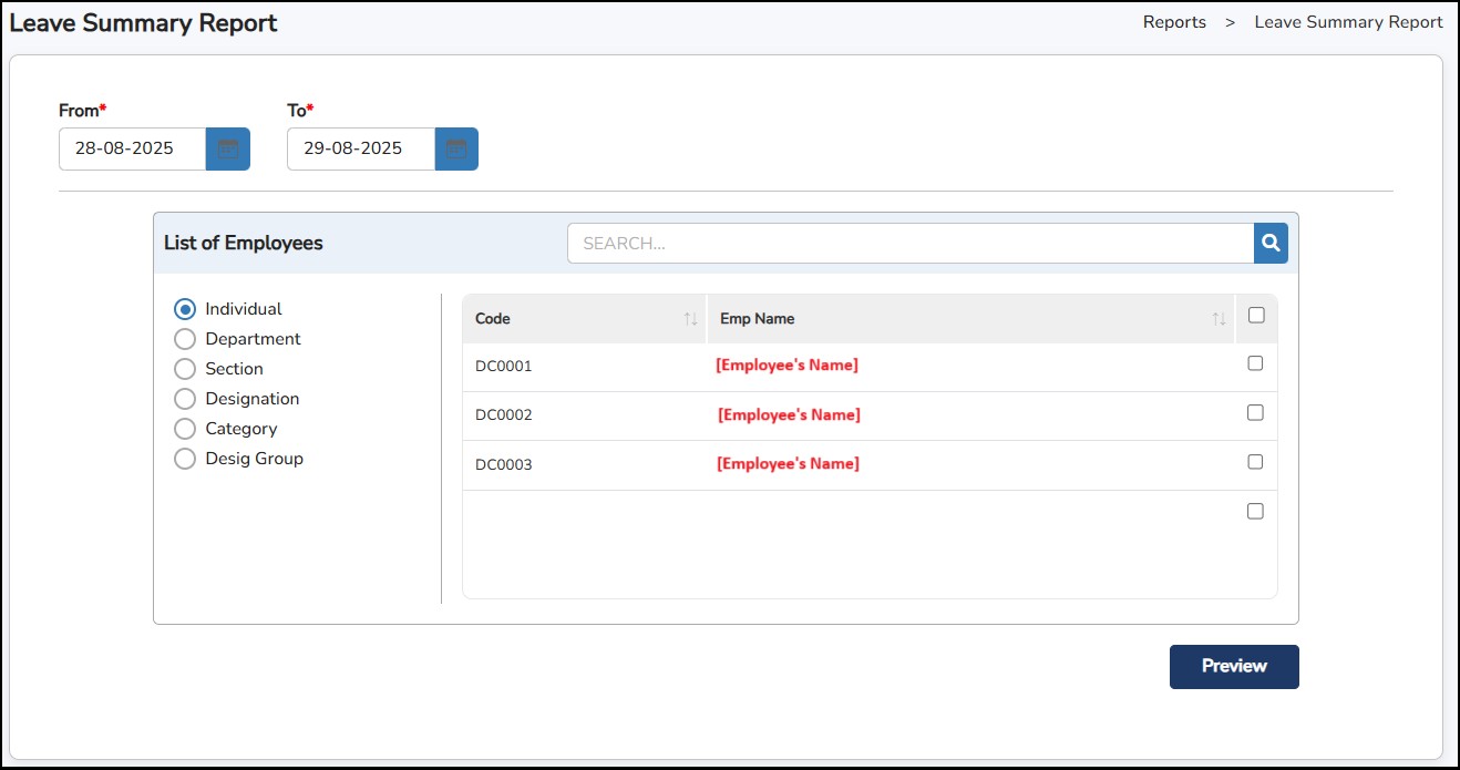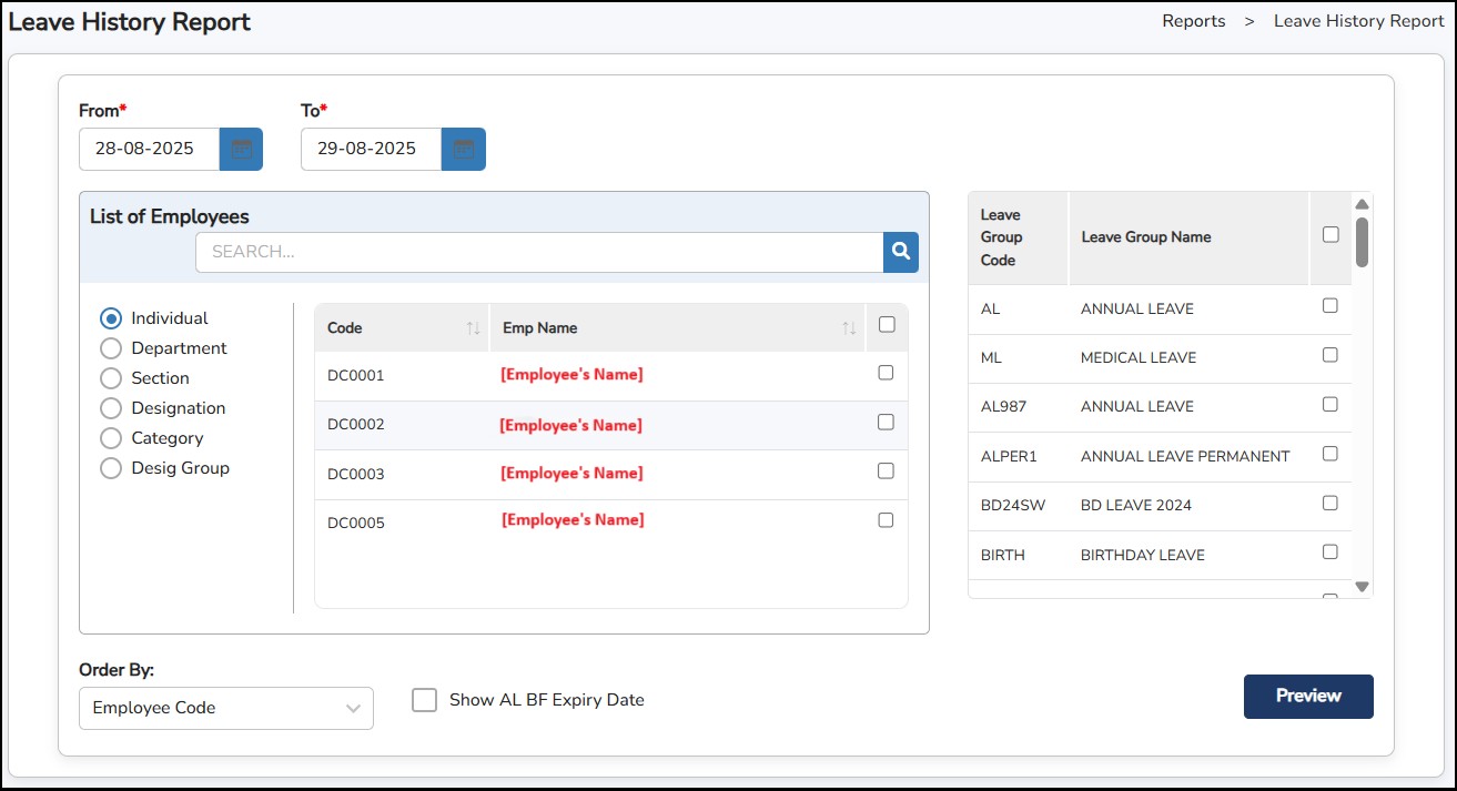 Step 3: Select the Annual Leave or Medical Leave names to be generated.