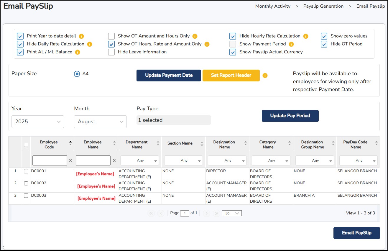 You may view your payslip by selecting the Year, Month and Pay Type and click