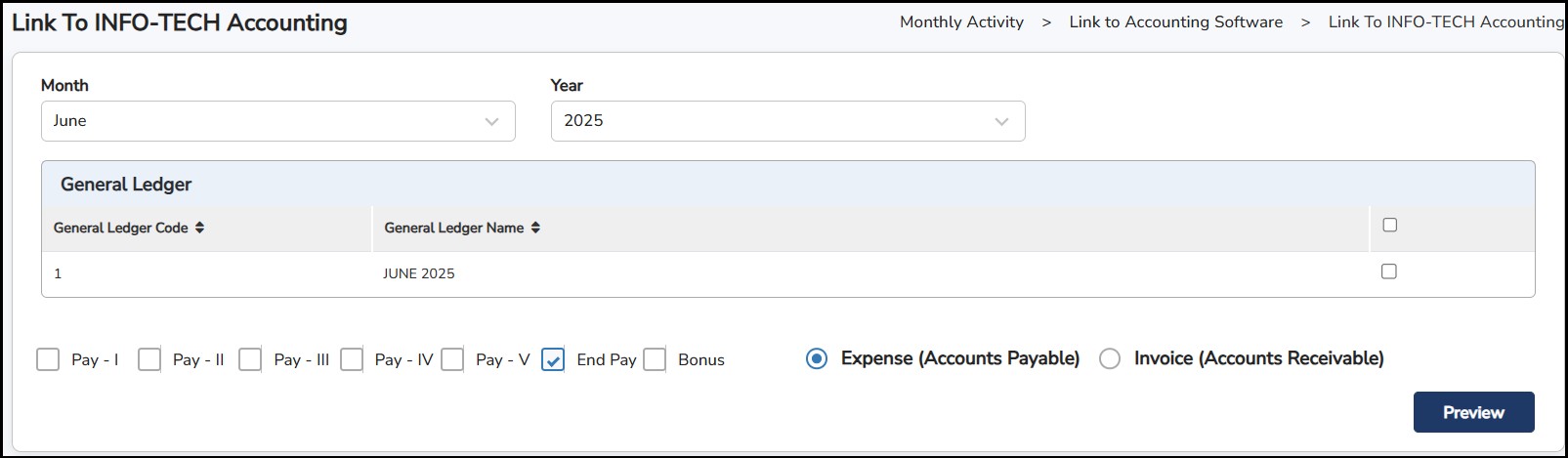 Step 3: Tick to choose what report to generate: Preview AL, ML or Export All Leave Types. If "Export All Leave Types" is selected, the option to choose which leave types to include will appear.