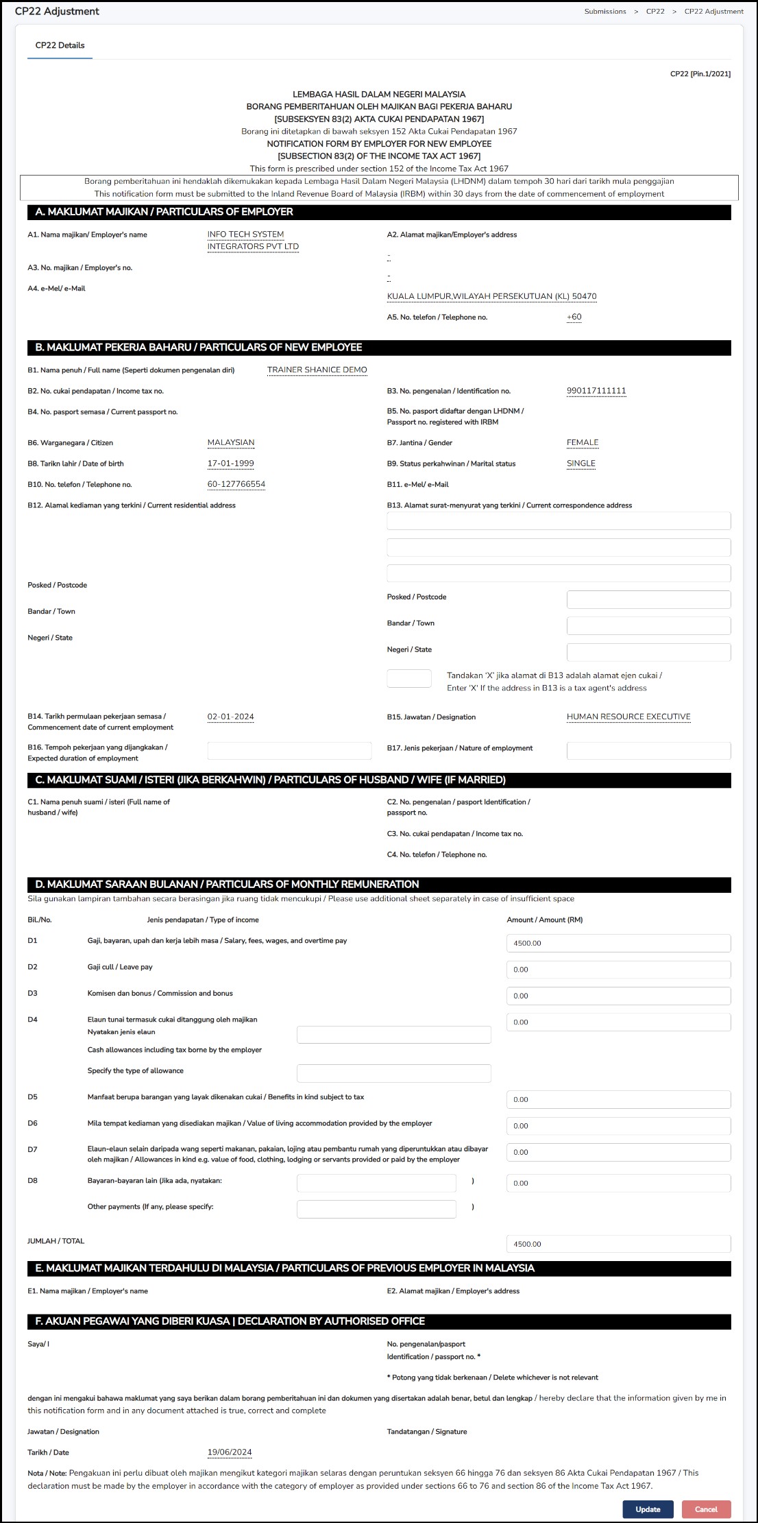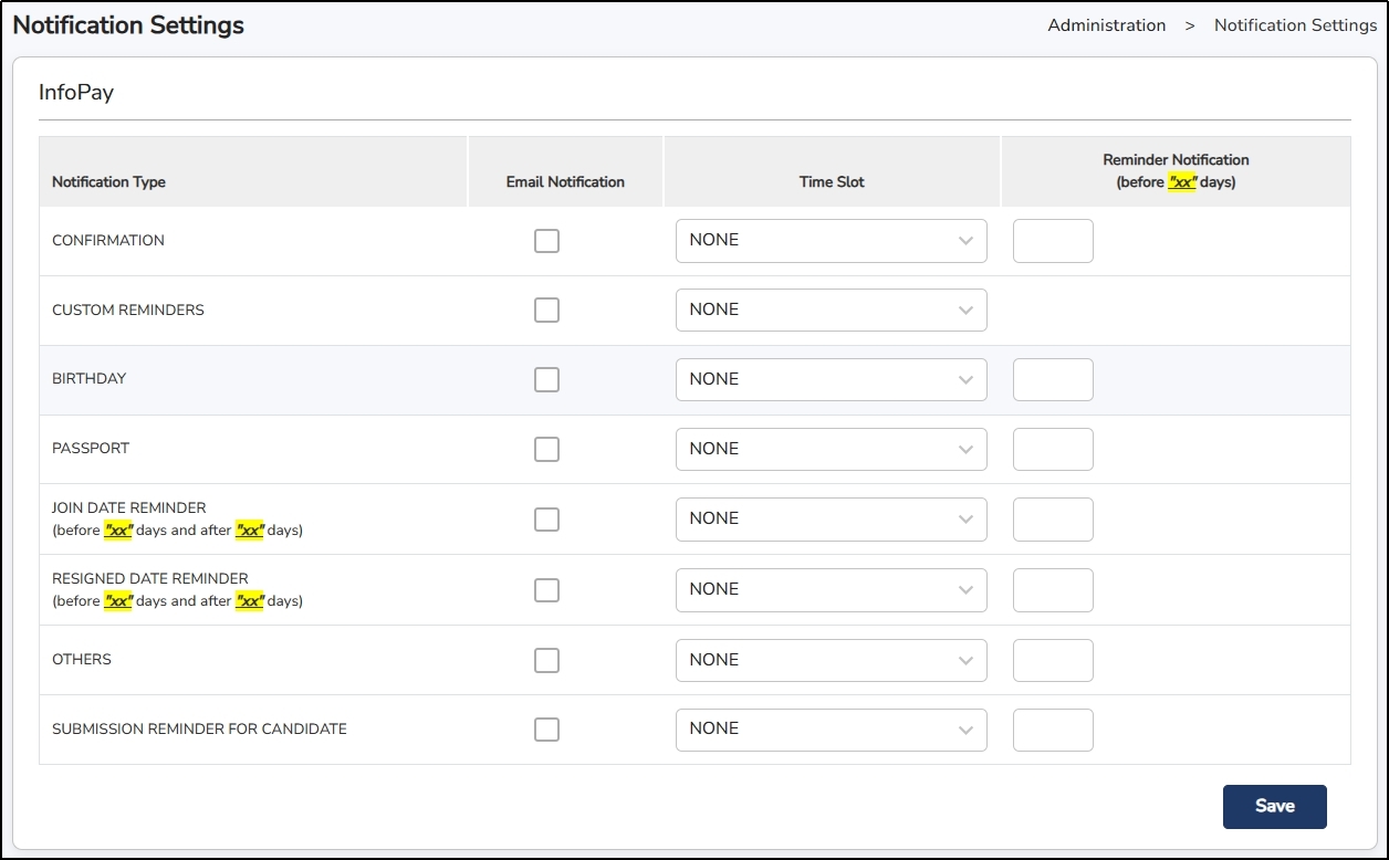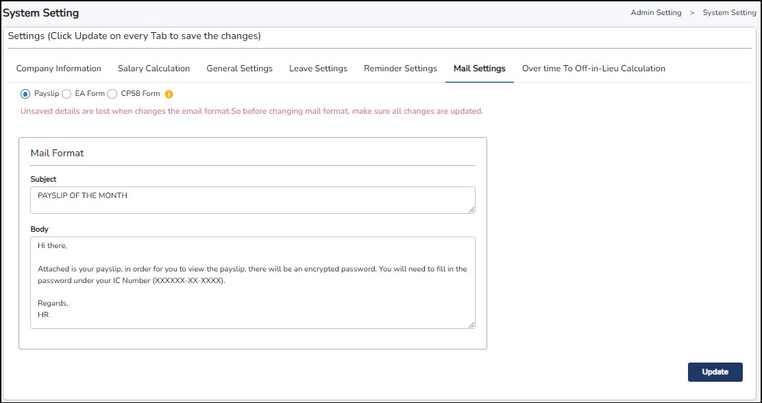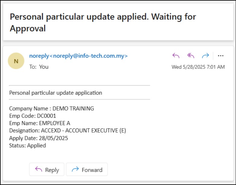Statutory Email Notification – To allow user to receive the statutory e-mail notification.