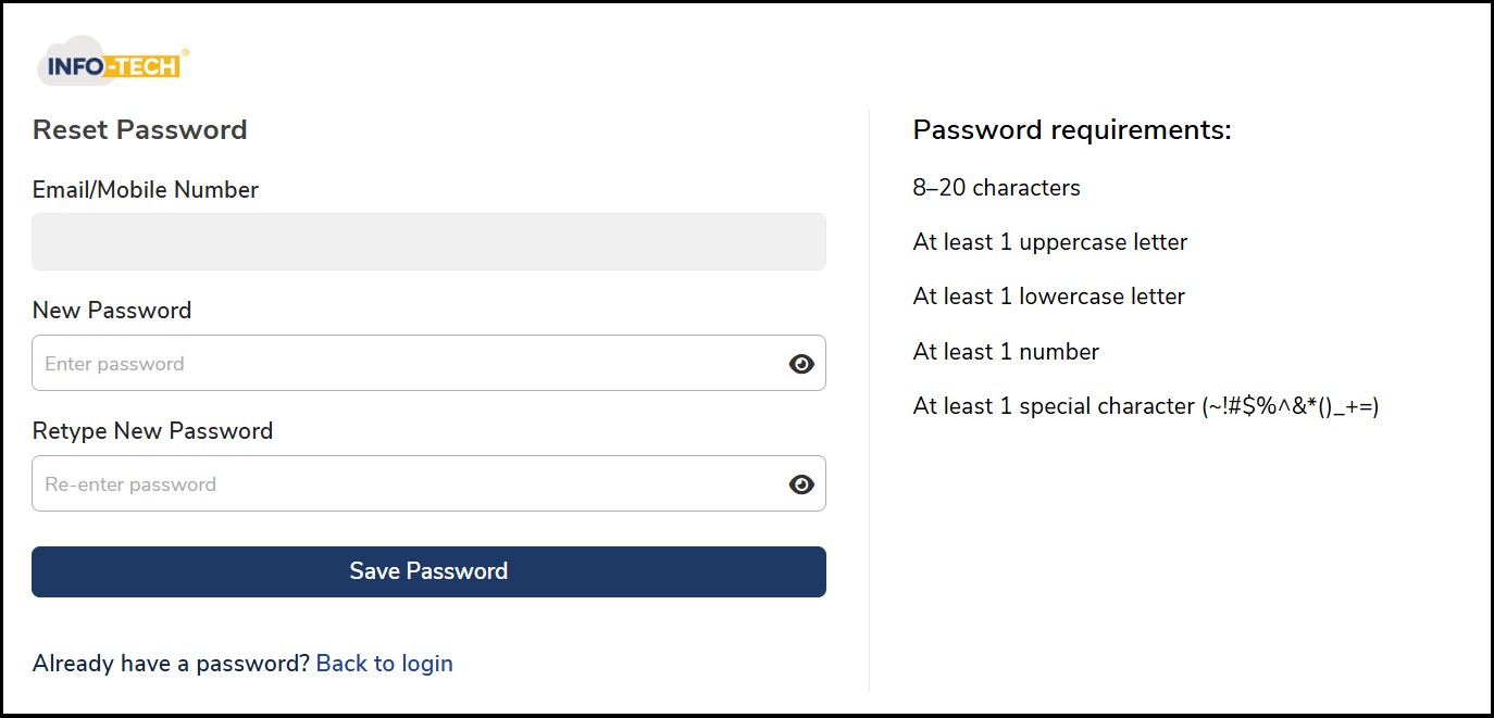 After purchasing the system, Info-Tech will set up the first super user (Administrator) for your organization and send a welcome mail to the super user's email ID. After that the login credentials will be sent to the registered email ID, and the super user needs to log in to the system and must perform the below required steps as the initial configurations of the " Super User ": -