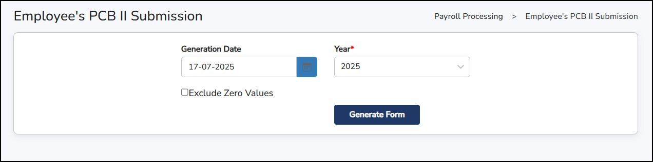 To view your PCB II Form generated by the system. Enter the Generate Date, select the year, and click