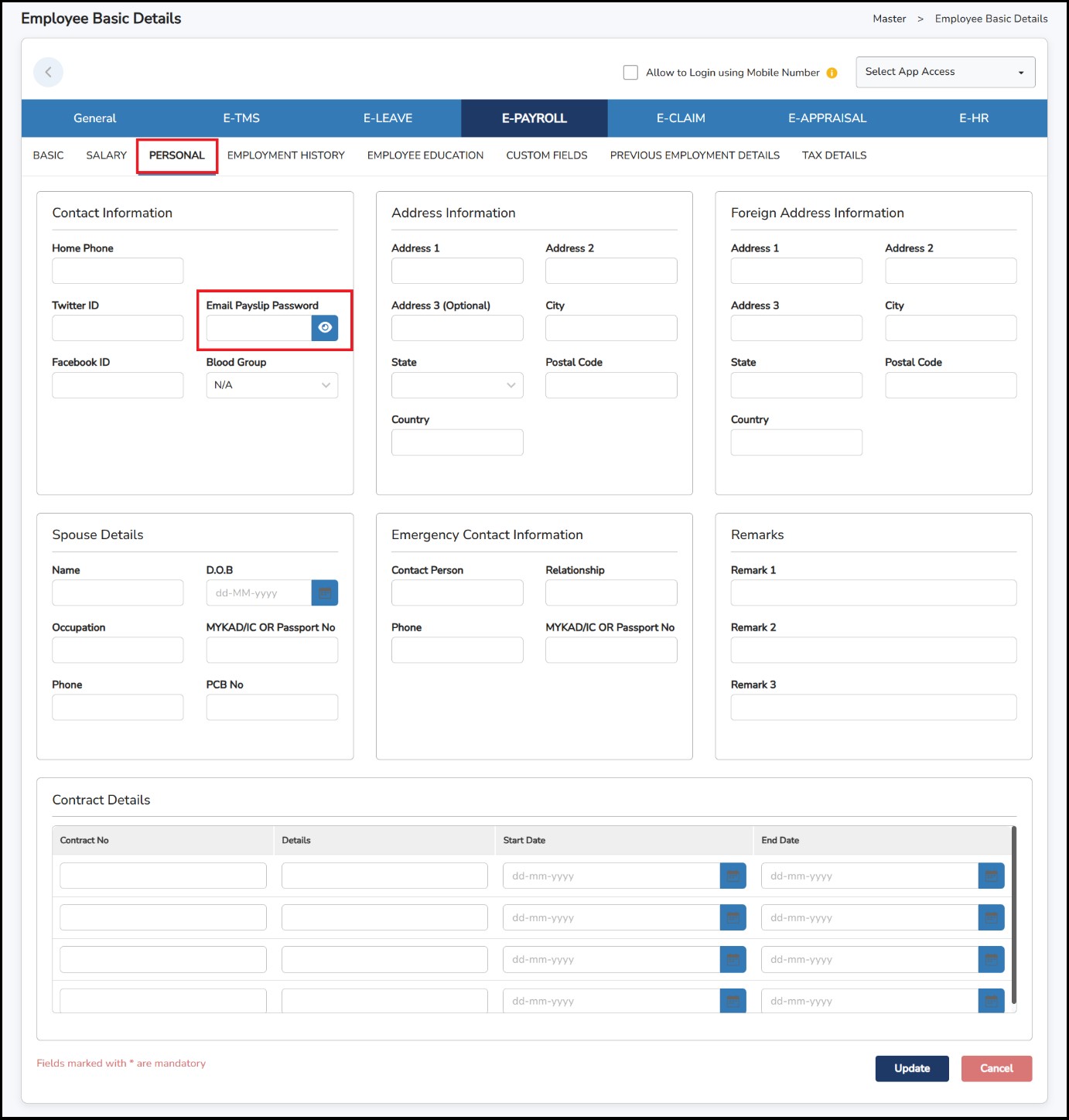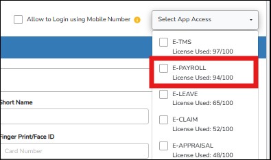 Is Super Admin? – If enabled, the user will have access to all employee data in the respective software.E.g. If you tick "Is Super Admin?" for E-Payroll, the user will have access to all employee data in the Payroll software.