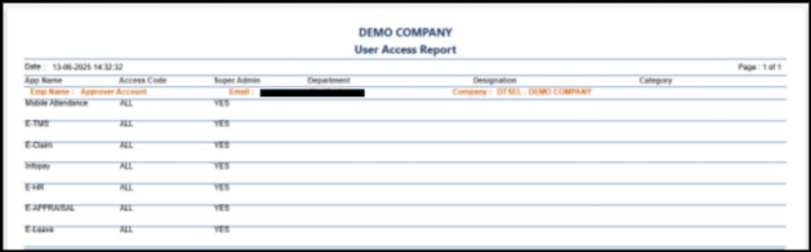 This report is to display the rights of users who can access the system. Users can view the report type by Access Report or Approver Report.