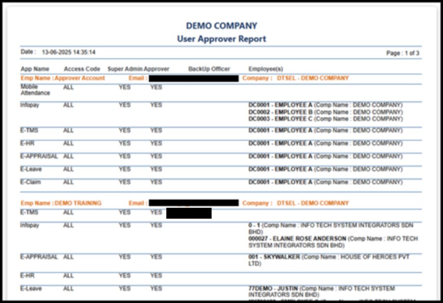 Approver Report : Provides a breakdown of approvers assigned to employees across different application modules