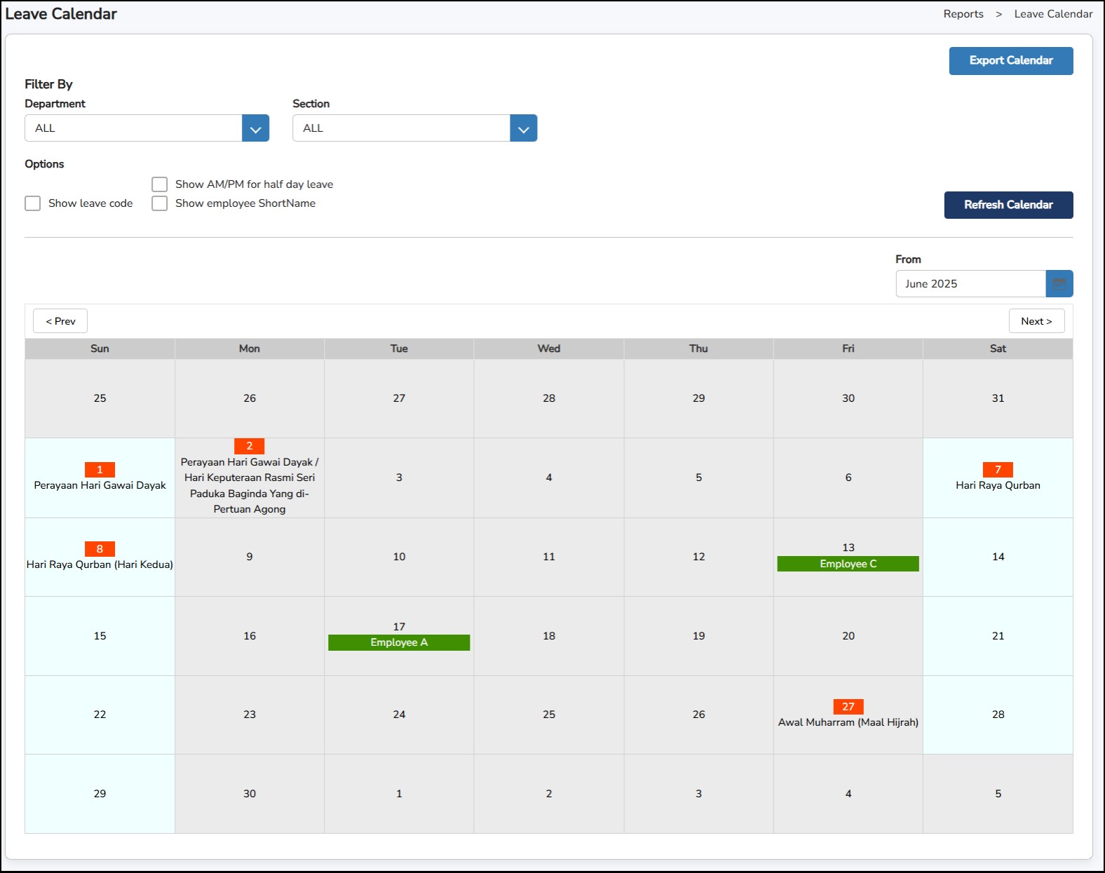 Step 1: Go to Reports > Leave Reports > Calendar Format Report.