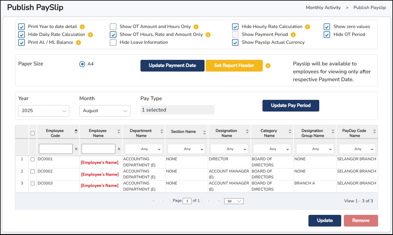Step 3: Tick "Show Leave Code", "Show AM/PM for Day Leave", and "Show Employee Short Name" if applicable